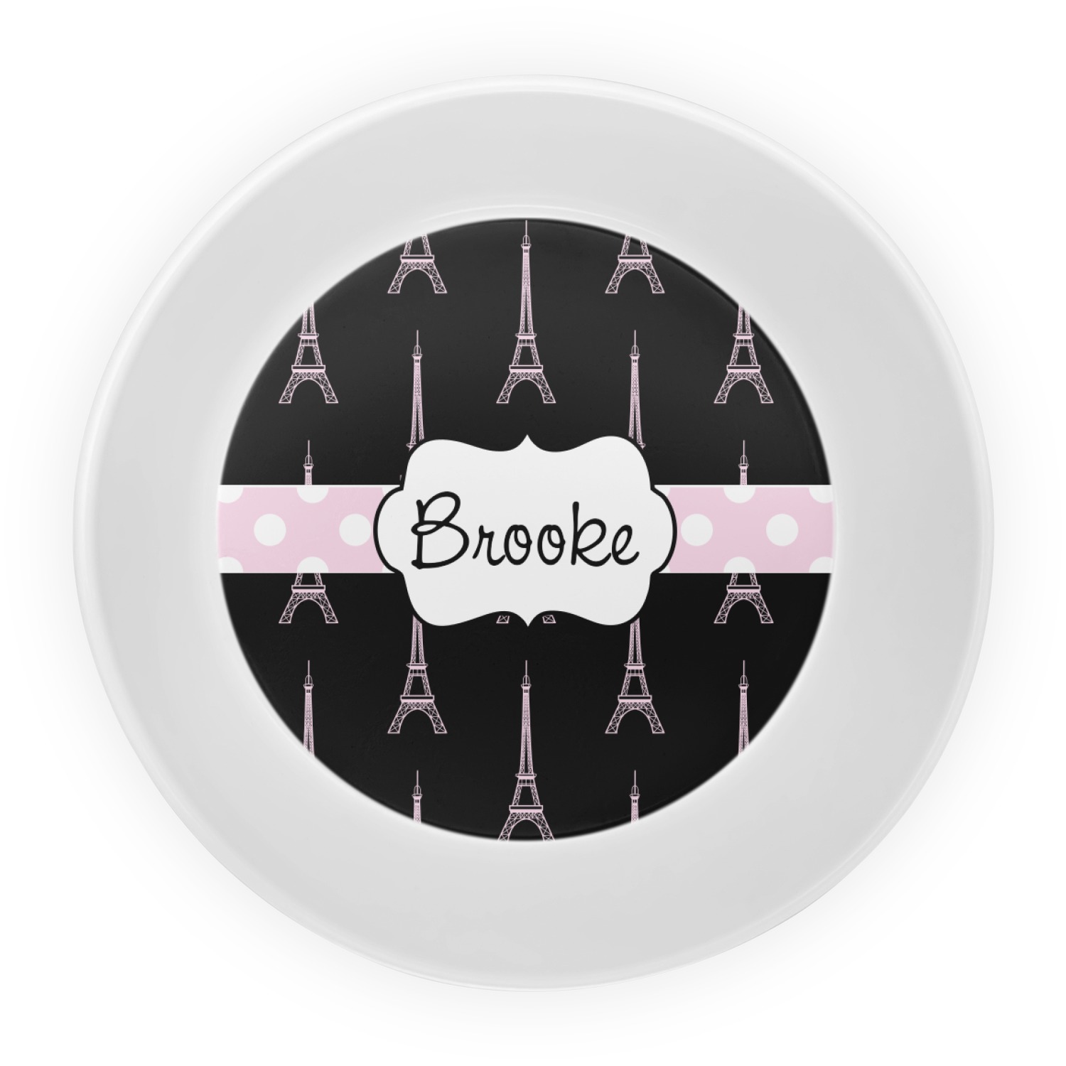 Our melamine dinnerware are BPA free, break-resistant, and dishwasher safe. Our first model has a more functional, standard look, and can hold up to 8 ounces of liquid. The second version we offer has a tapered edge and can hold up to 12 ounces of liquid. Both bowls display your customization on the base of the bowl's inside, and the exterior of the two models are both white.
