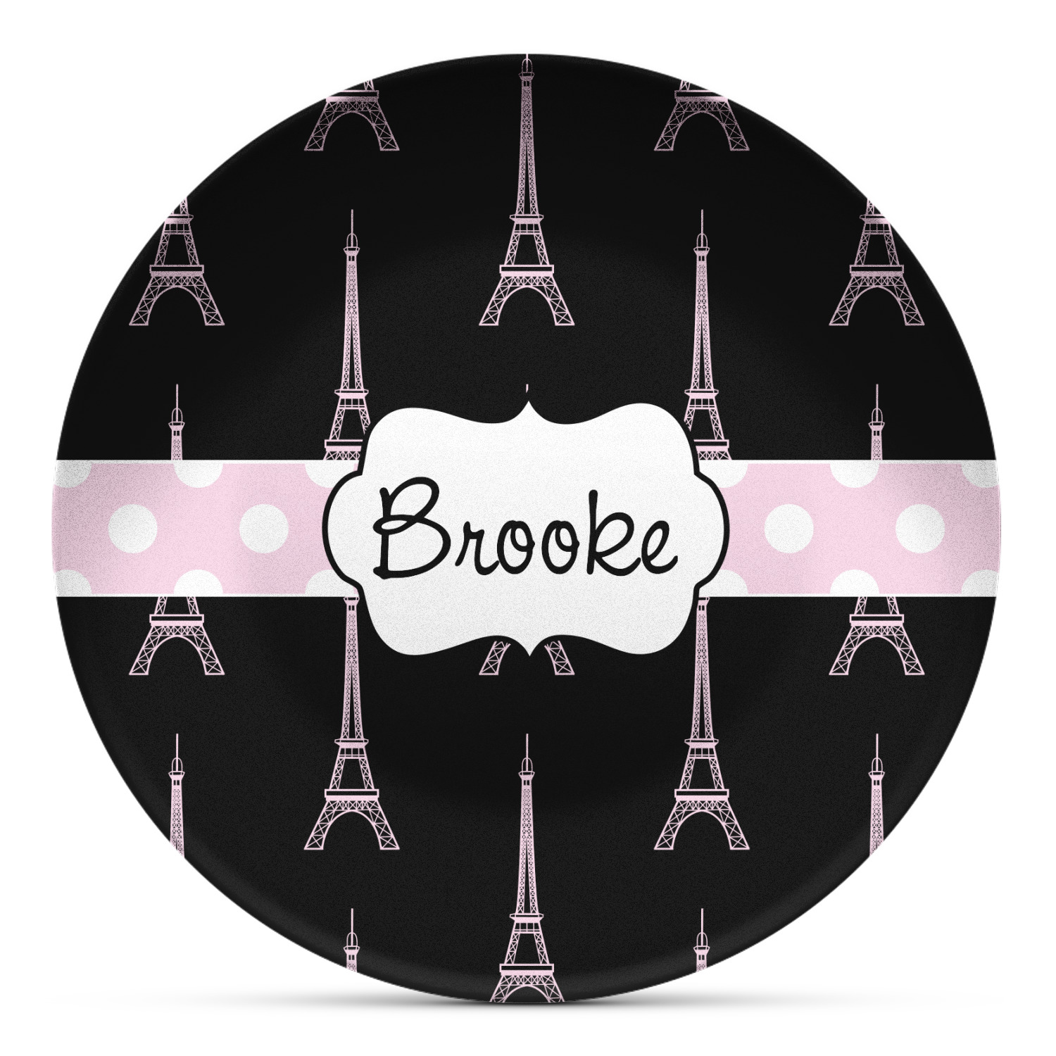 These plastic plates have the versatility, durability, and weight of melamine plates but are instead are made from a melamine-free composite, thermo-set, polymer plastic. These plates are made right here, in the USA, without the use of harmful chemicals, such as BPAs, formaldehyde, or DEHPs. Our elegant plastic plates can even withstand temperatures of up to 250 degrees Fahrenheit, for up to 60 minutes. The entire face of the plate exhibits your personalization in bright, vibrant color, and the plate's diameter measures at 10" long.
