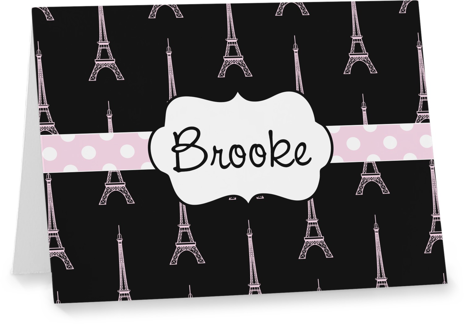 Our custom folded note cards are printed on premium 100lb. card stock and comes with white envelopes. The note card measure 5.5 by 4.25 inches and are blank on the inside for your handwritten message.