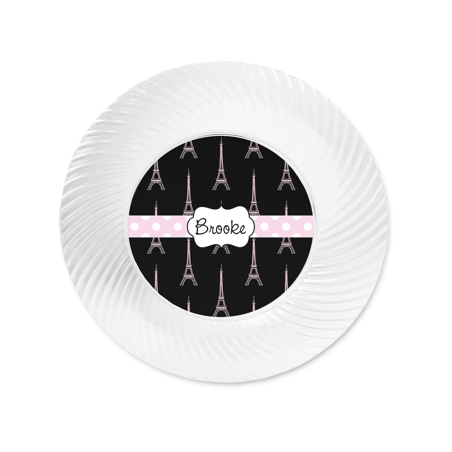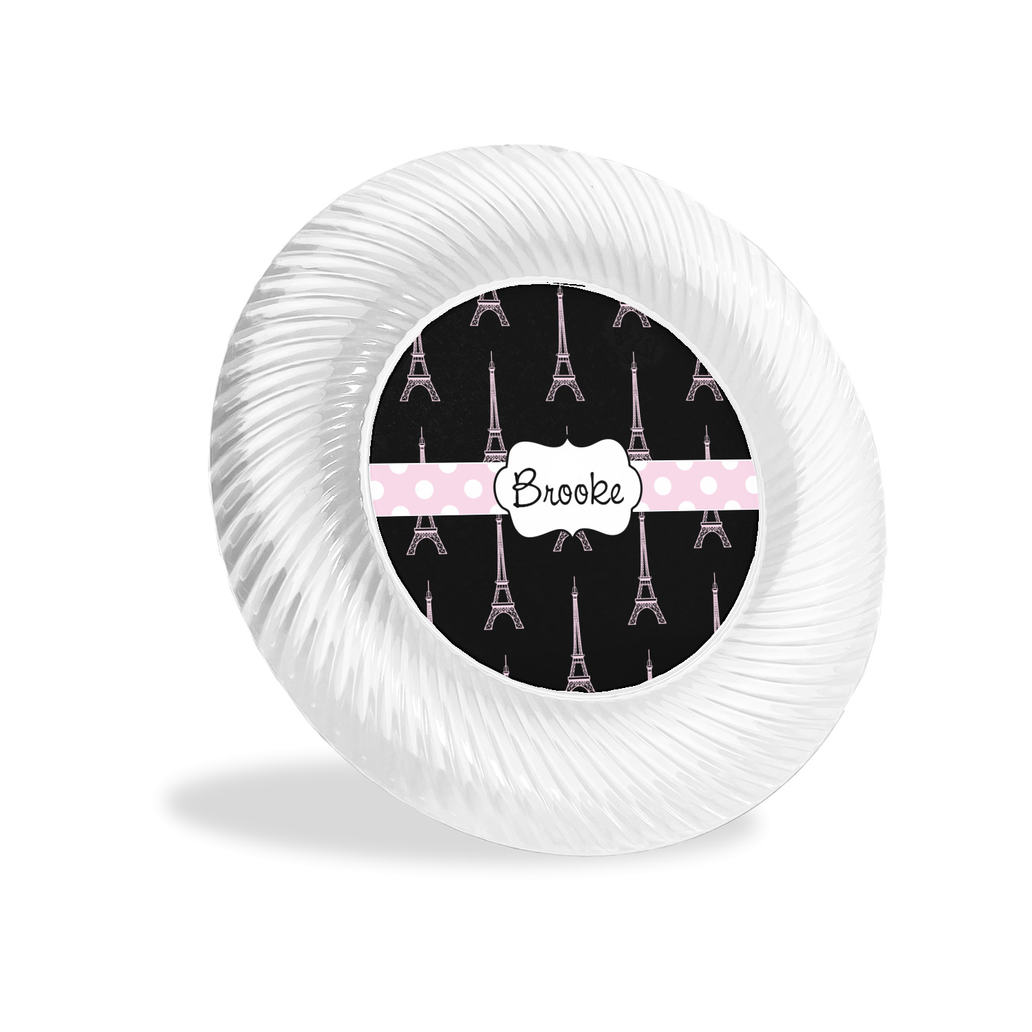 Made from a beautiful clear plastic plate as a base, your design is printed to the underside of the plate. The outside of the plate has a classic swirl texture to it for a high quality look and feel.