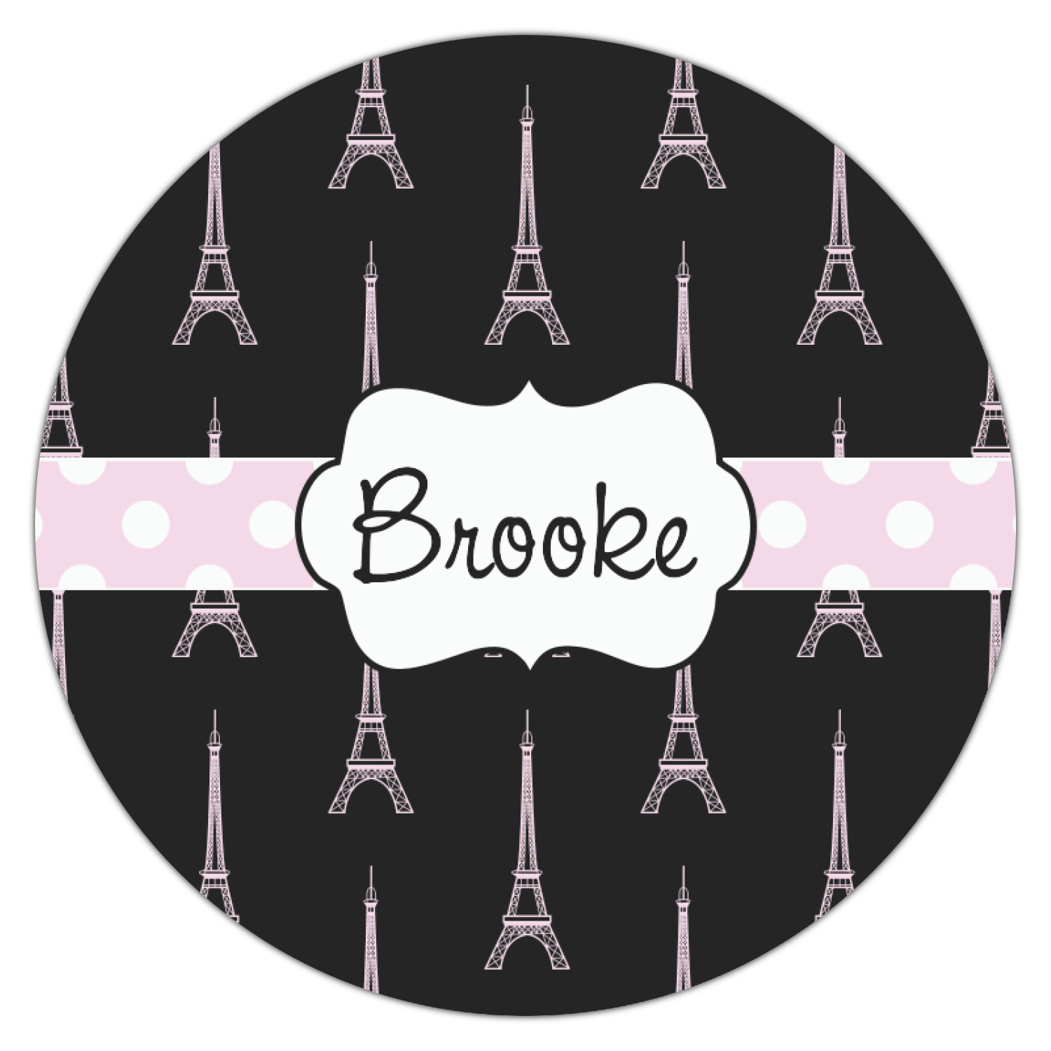 A gorgeous wide soft pink and white polka dot band adds a touch of French whimsy. The beautiful white label trimmed in coordinating pink highlights the personalization of your choice.