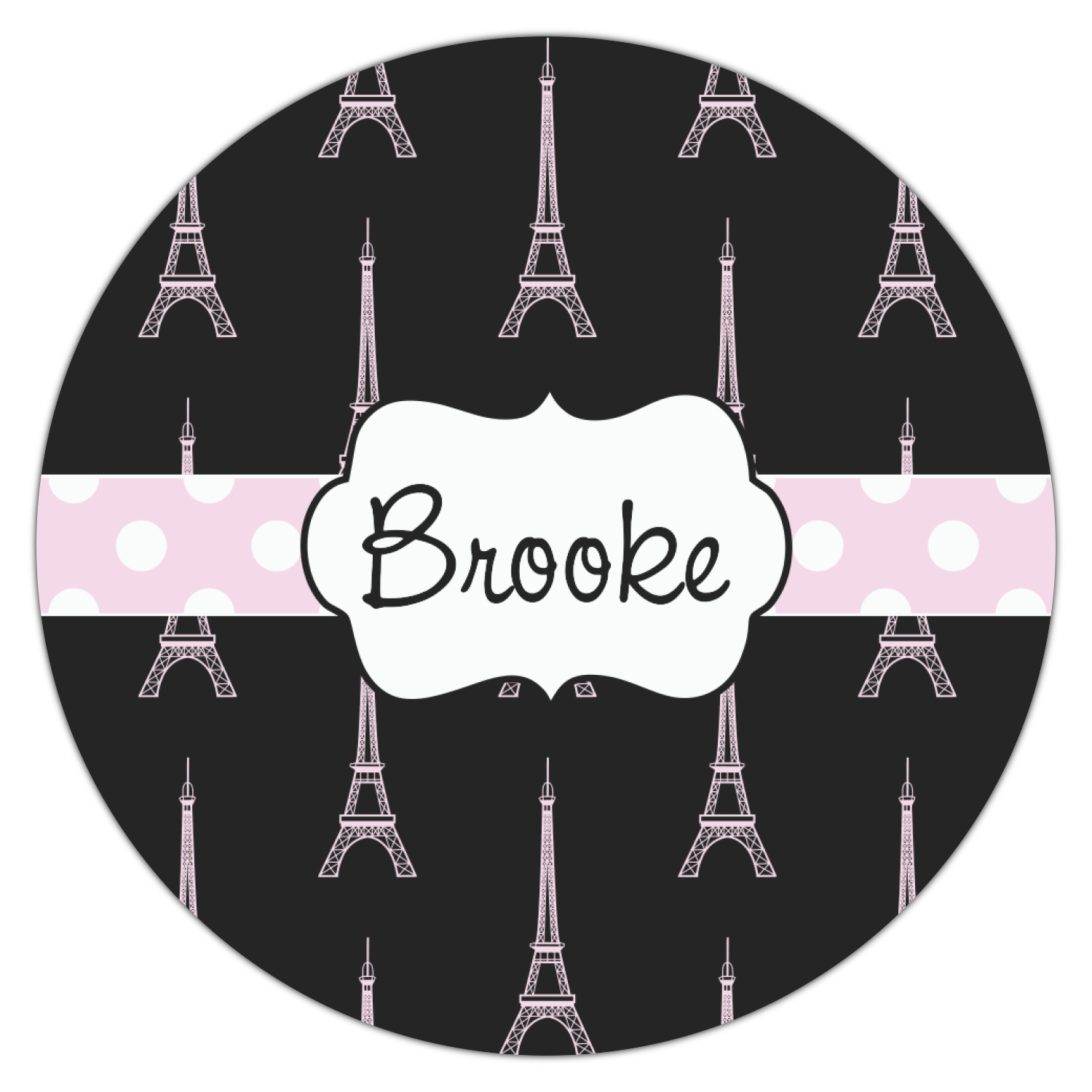 A gorgeous wide soft pink and white polka dot band adds a touch of French whimsy. The beautiful white label trimmed in coordinating pink highlights the personalization of your choice.