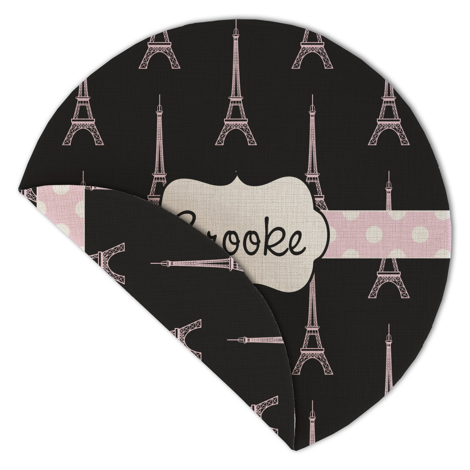 A gorgeous wide soft pink and white polka dot band adds a touch of French whimsy. The beautiful white label trimmed in coordinating pink highlights the personalization of your choice.