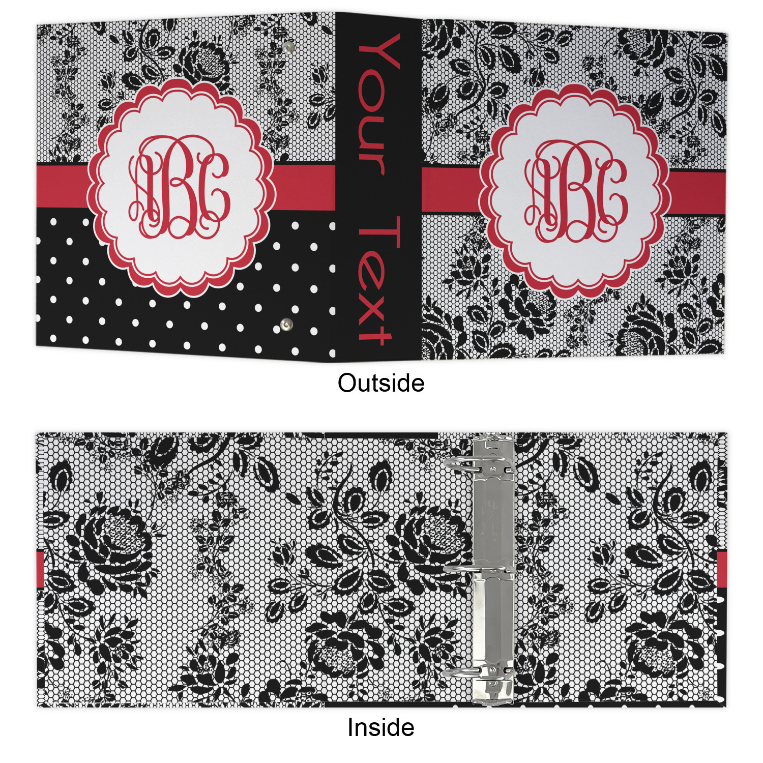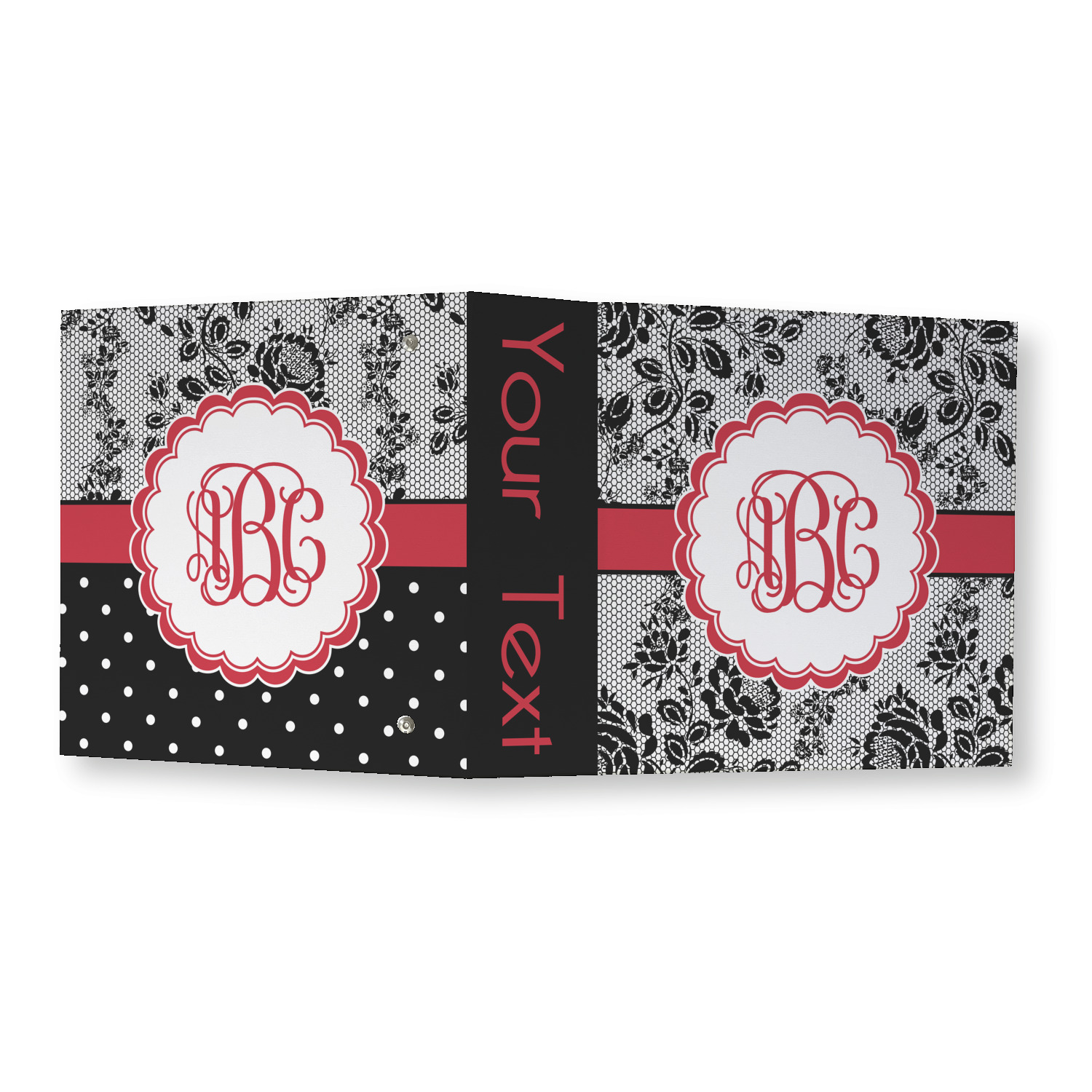 Made from a sturdy cardboard base with a full high quality canvas textured vinyl wrap with the design of your choice. Unlike our standard 3-ring binder with the full wrap design your artwork wraps from the front and back and into the inside of the binder.