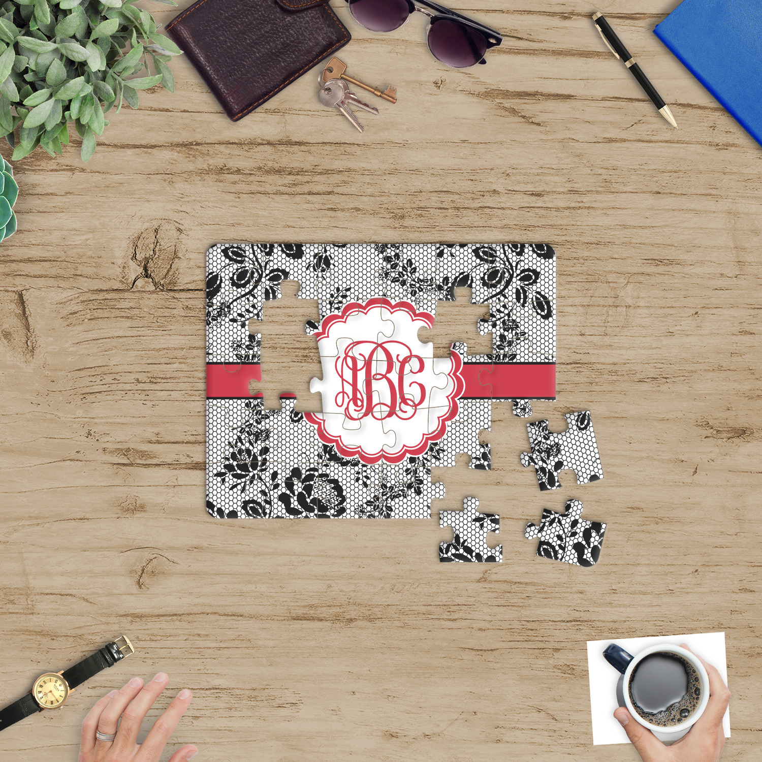 Depending on the look you are trying to achieve, you can add; a thematic pattern or background, with a photo in a frame and text or personalization to your puzzle. Basically if you can imagine it, you can design it!