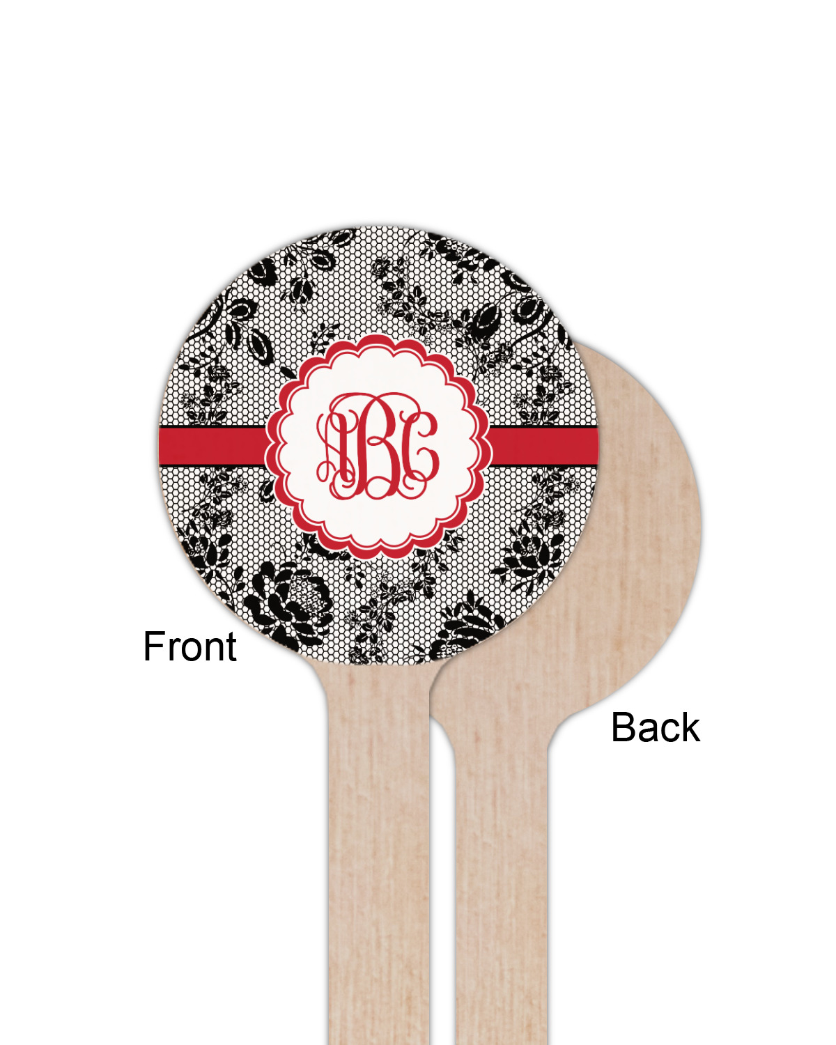 A wide red band with a thin white outline adds a punch of color. The scalloped label highlights a classic personalized monogram.