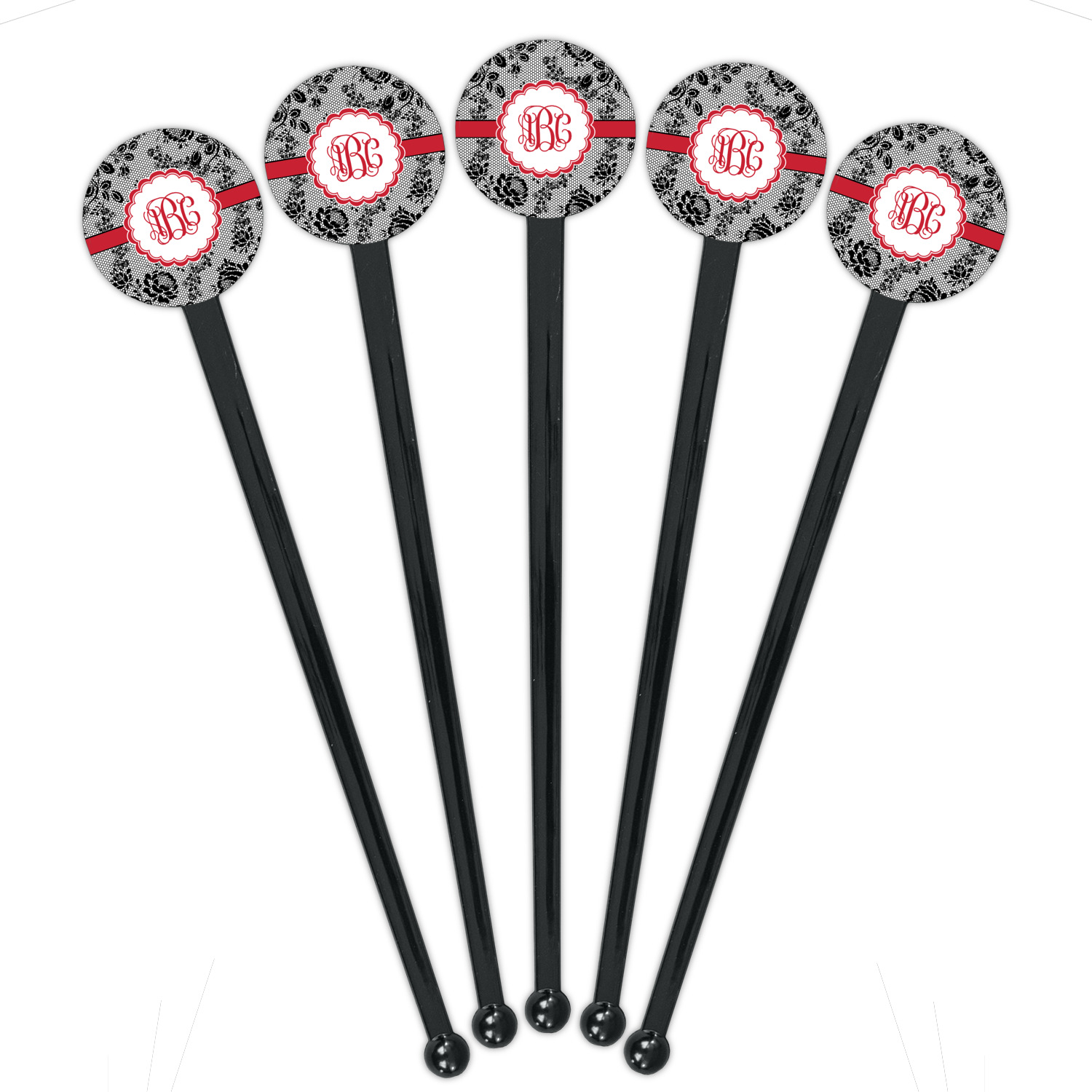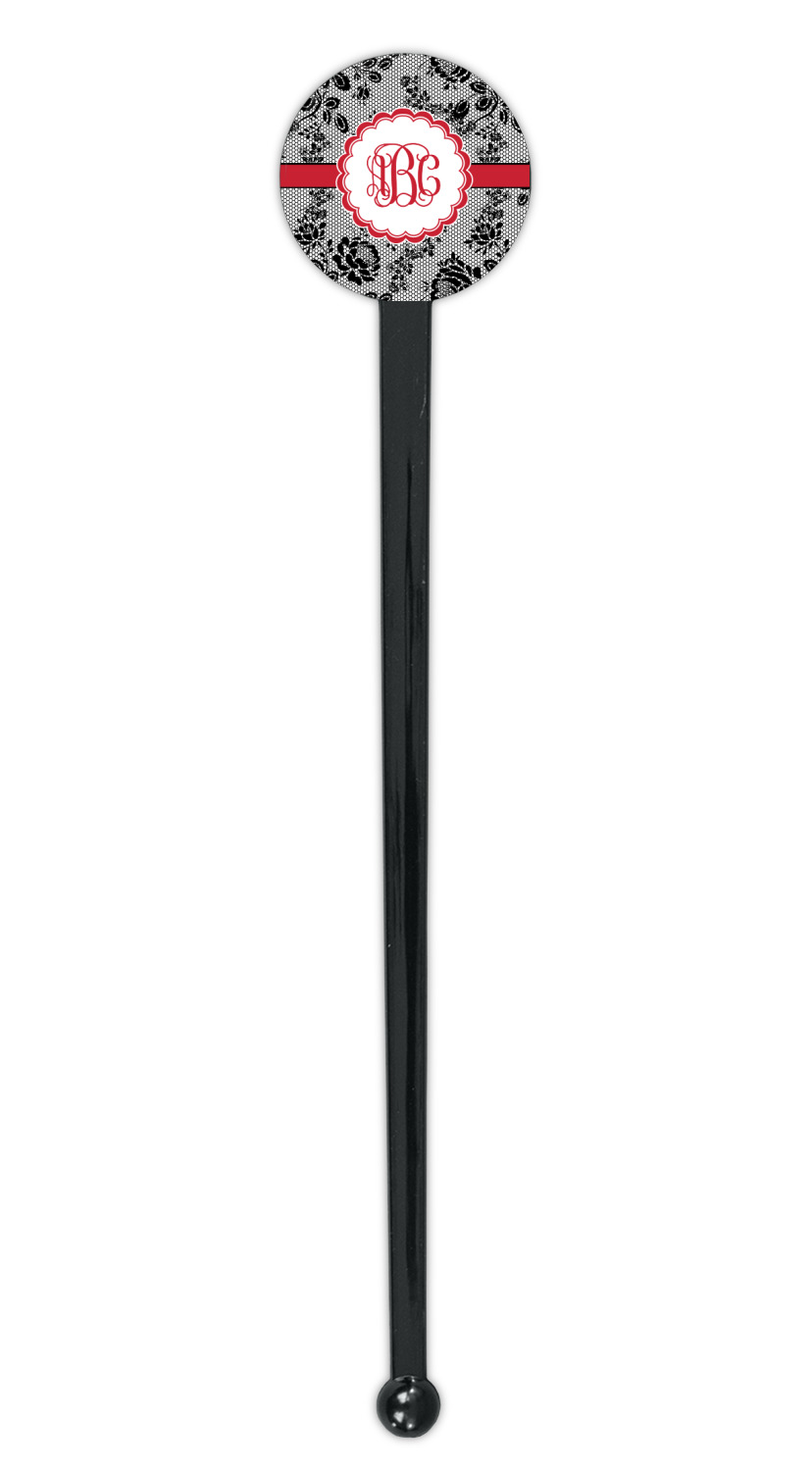 A wide red band with a thin white outline adds a punch of color. The scalloped label highlights a classic personalized monogram.