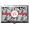 A wide red band with a thin white outline adds a punch of color. The scalloped label highlights a classic personalized monogram.