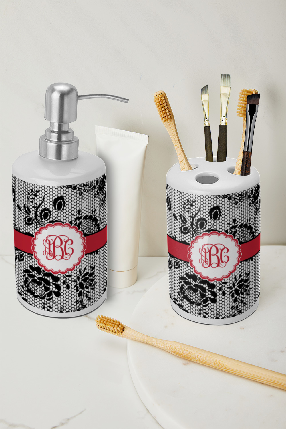 | Product Dimensions | Ceramic Soap / Lotion Dispenser (4" x 3" x 7") Ceramic Toothbrush Holder (3" x 3" x 4.5") |