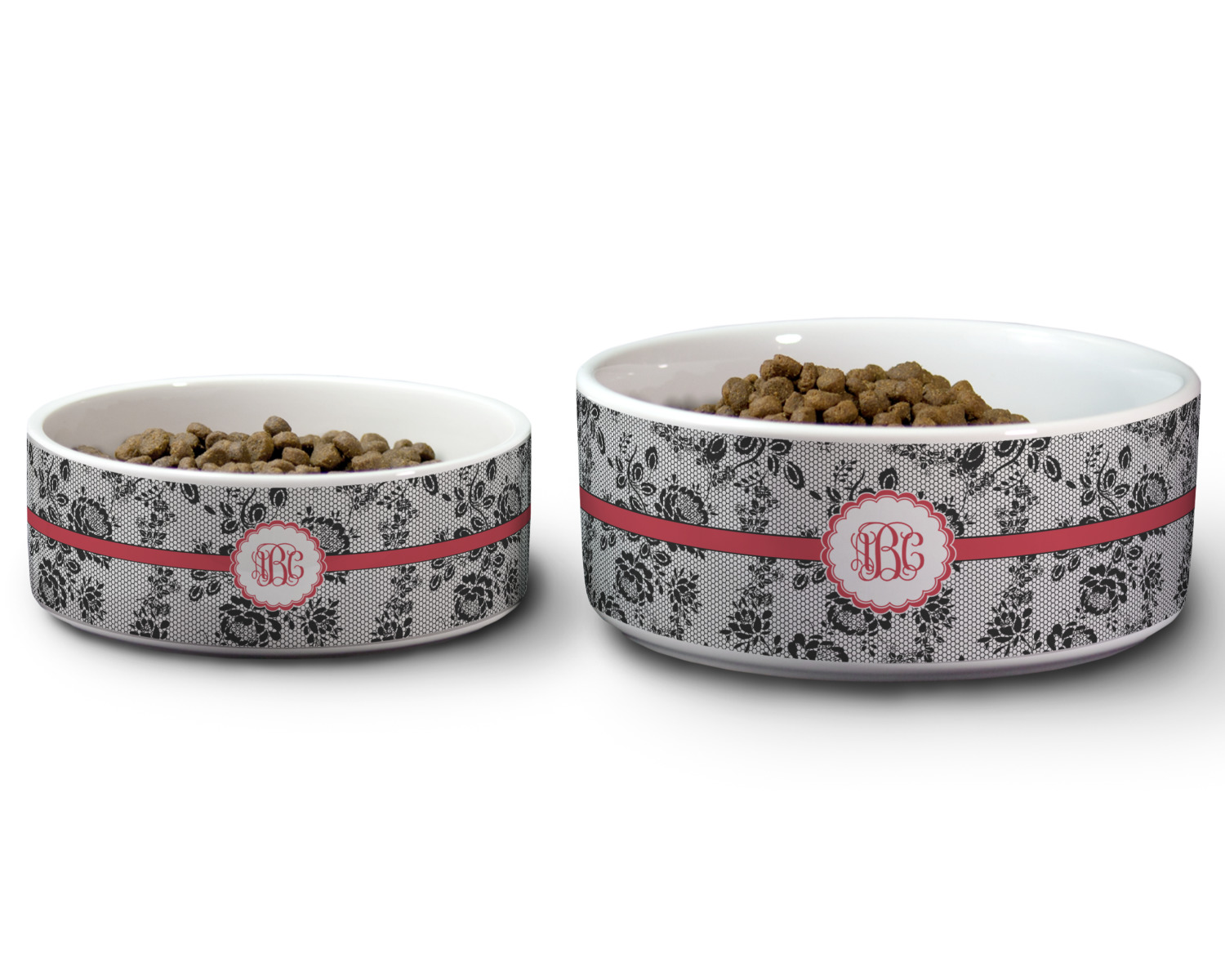 We carry these custom dog bowls in two available sizes: medium and large.The medium is 6 inches in diameter and 2.5 inches tall, and can therefore suit pets who eat up to 2.5 cups of food per meal. The large pet bowl is 7 inches in diameter and 3 inches tall, and suits pets who require up to 4.5 cups of food per meal.