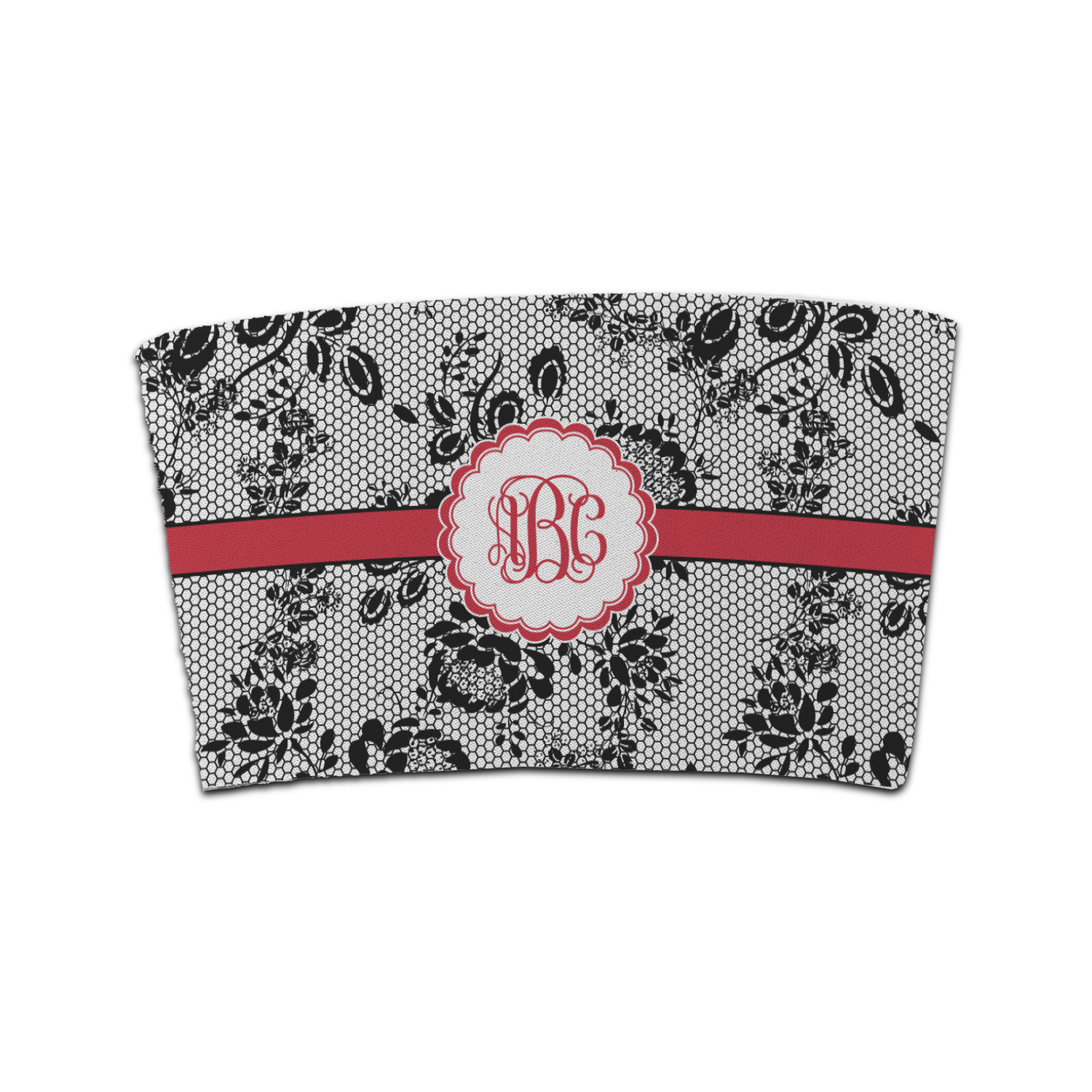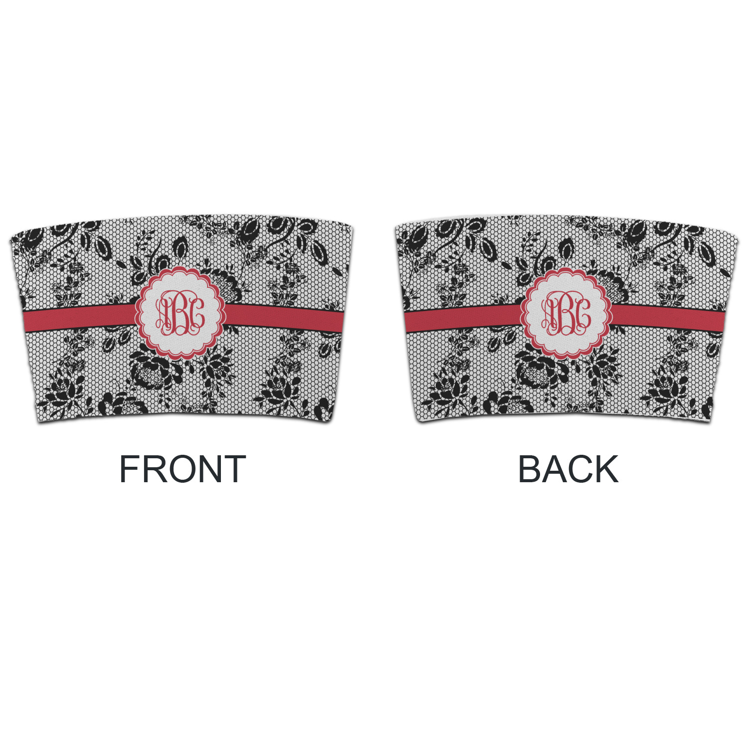 A wide red band with a thin white outline adds a punch of color. The scalloped label highlights a classic personalized monogram.