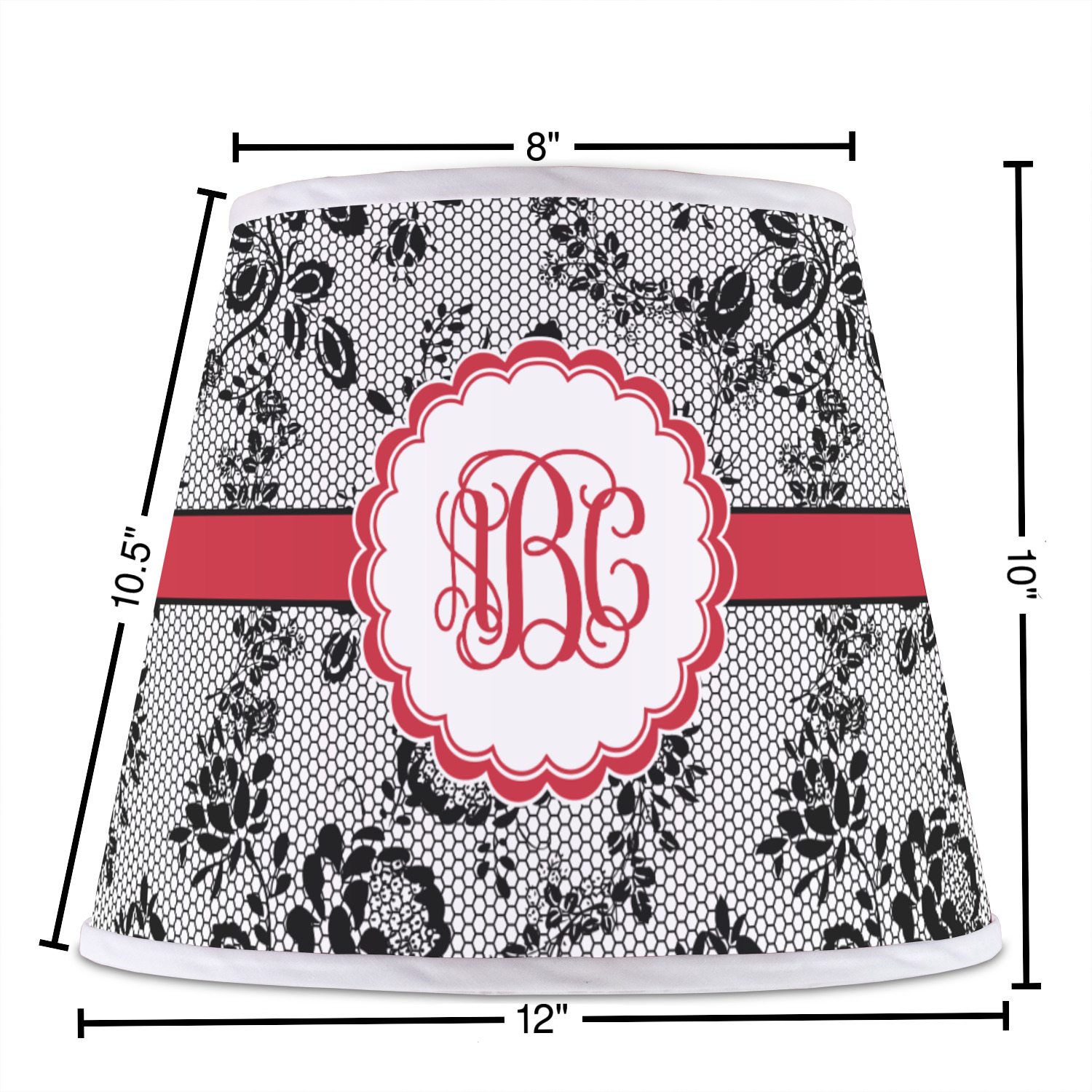 The base of this lampshade is 12 inches in diameter, and the top spans 8 inches in diameter. The total height of the lampshade is 10 inches. The angled nature of this custom lampshade concentrates the light, making it ideal for smaller spaces. This lampshade is made of matte, polyfilm, and displays your customization in its middle. The top and bottom of this colorful lamp shade are lined with a white fabric ribbon (which can be replaced with black inside the design studio) which frames your design and creates a sophisticated finish. As an UNO fitter lampshade, this unique lamp shade will fit a variety of bases.