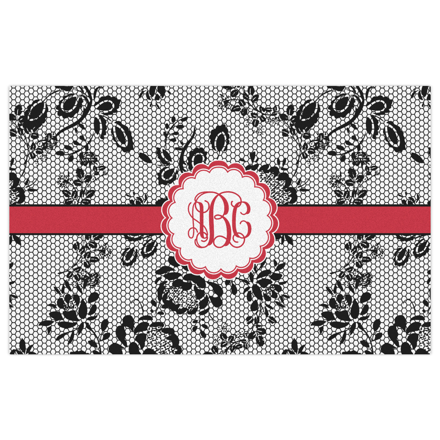 A wide red band with a thin white outline adds a punch of color. The scalloped label highlights a classic personalized monogram.