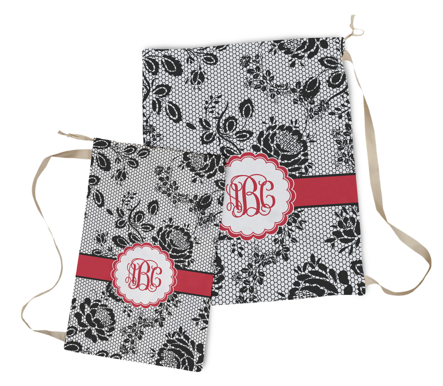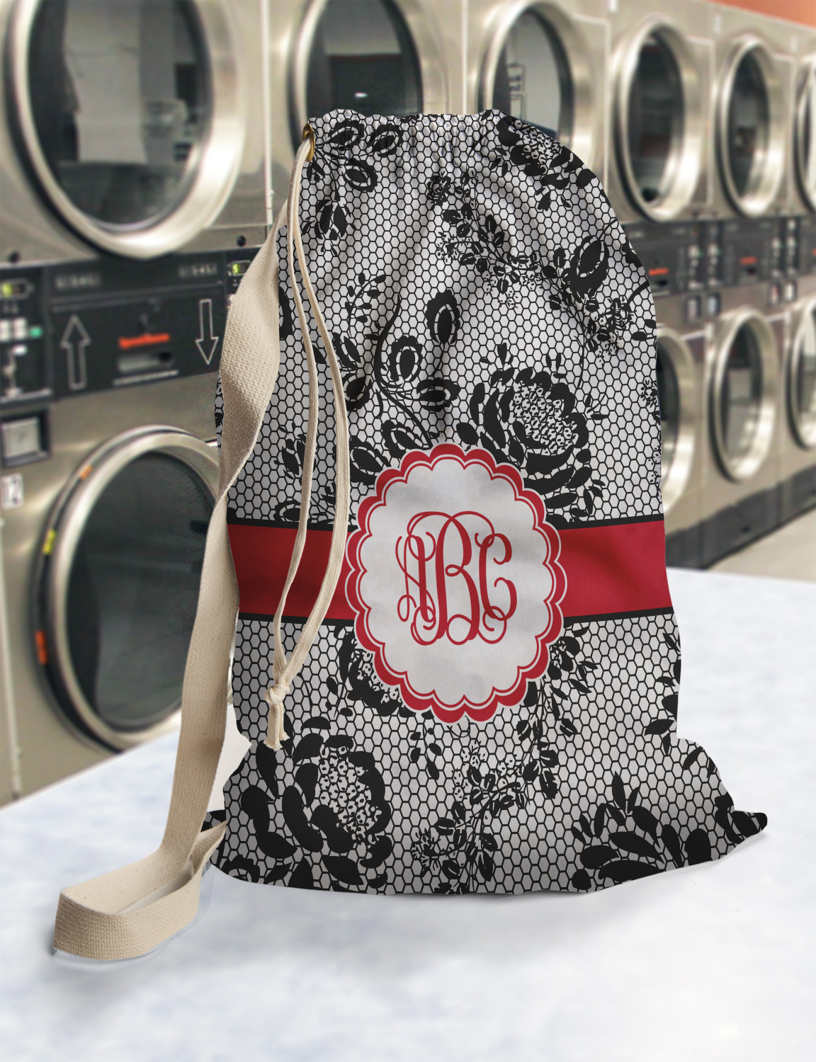 Carry your laundry in style with these customized laundry bags. Available in two sizes, featuring a natural colored woven strap and a cinch cord, these bags hold a lot of clothes or anything else you want to fit in them.