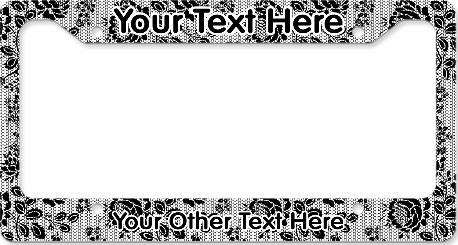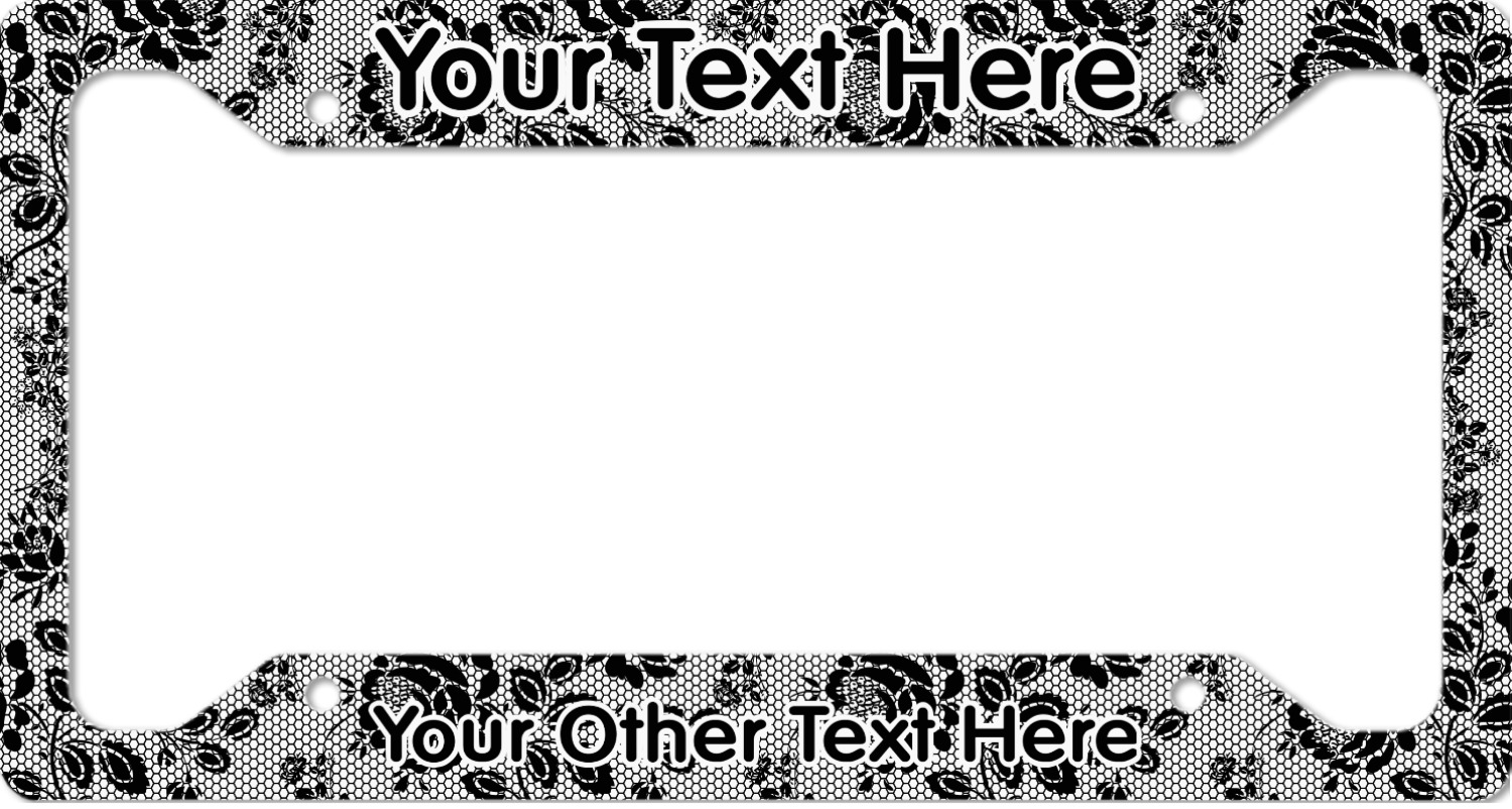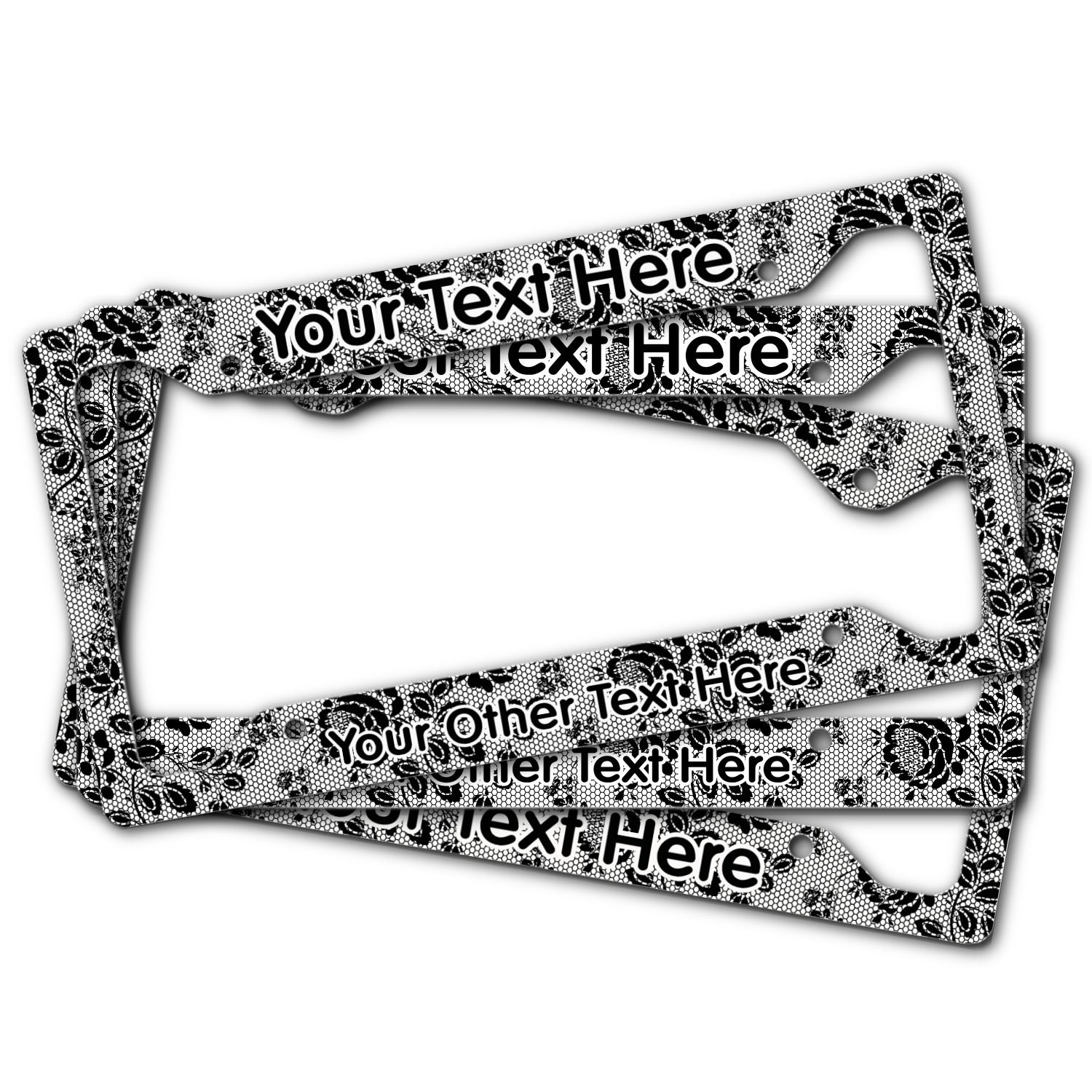 Each customizable license plate frame is made from a fine, yet sturdy aluminum material that measures approximately 6.5 x 12.15 inches, accommodating most standard license plates. The thickness allows the license plate frame to adhere completely to your license plate for a seamless look. We carry 3 styles of license plate frames to customize - Style A has texts on top and bottom, Style B offers texts on top and bottom as well as a full fill bottom border, and Style C offers text at the bottom only. The personalized license plate frame comes with four mounting holes for easy installation! We print each custom design across the frame with a glossy finish.