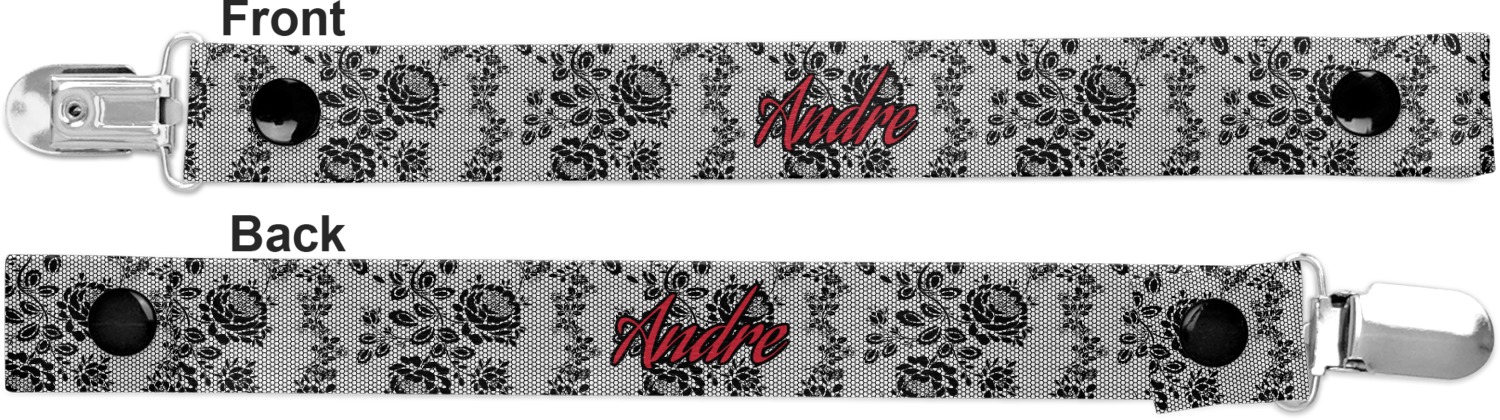 This personalized pacifier clip is the ideal size and measures at approximately 7.5 inches in length, when either end is snapped closed. On one end, you'll find a snap button. This button of your baby's pacifier holder is what can be attached to their pacifier to hold is securely in place. Simply open the snap, slip it through the pacifier opening, and snap it back into place. On the opposite end of this baby pacifier holder, you'll find a metal clip that can secure to a baby's collar or sleeve. This clip ensures that the strap stays in place, and that your baby's pacifier is always on hand.