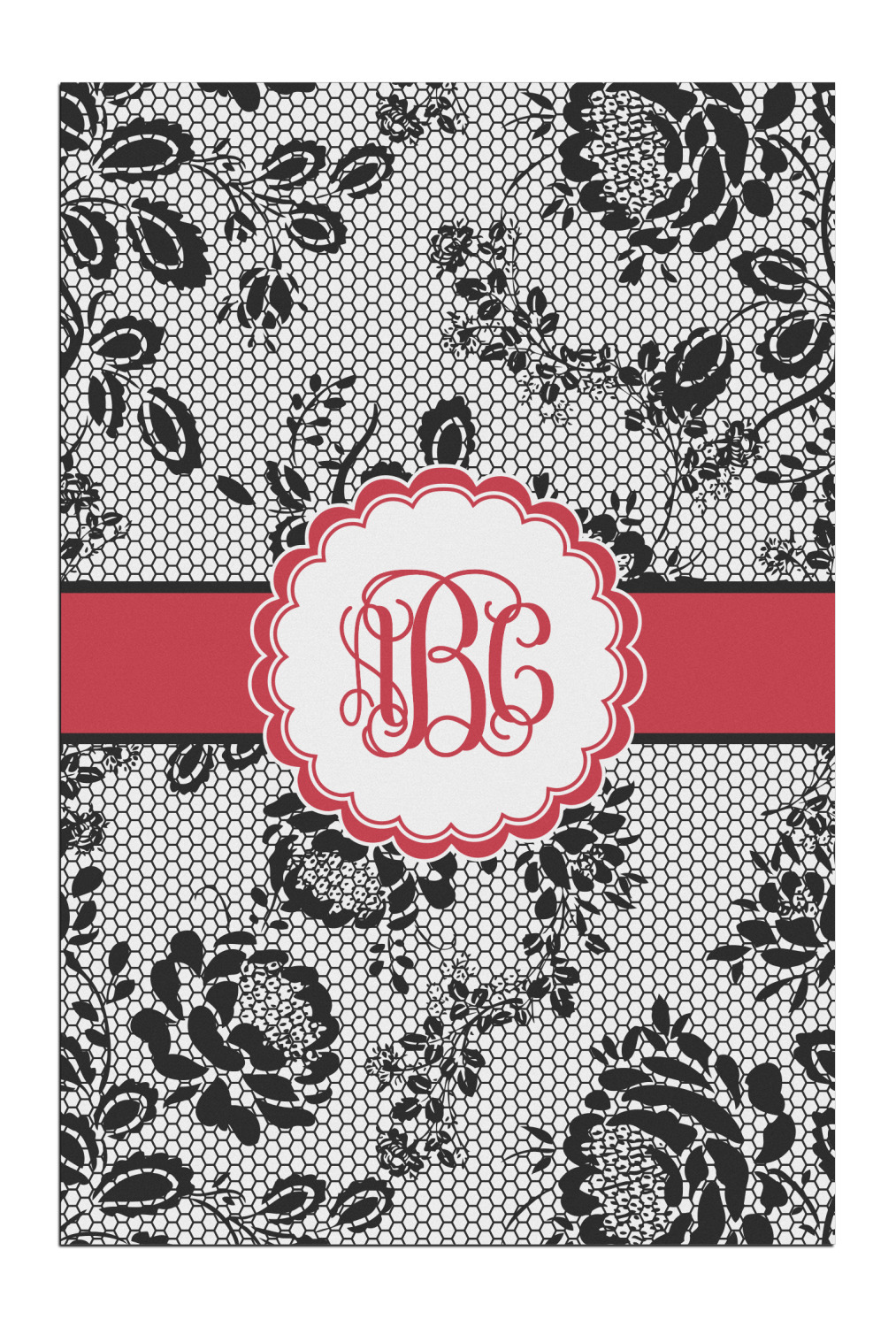 A wide red band with a thin white outline adds a punch of color. The scalloped label highlights a classic personalized monogram.