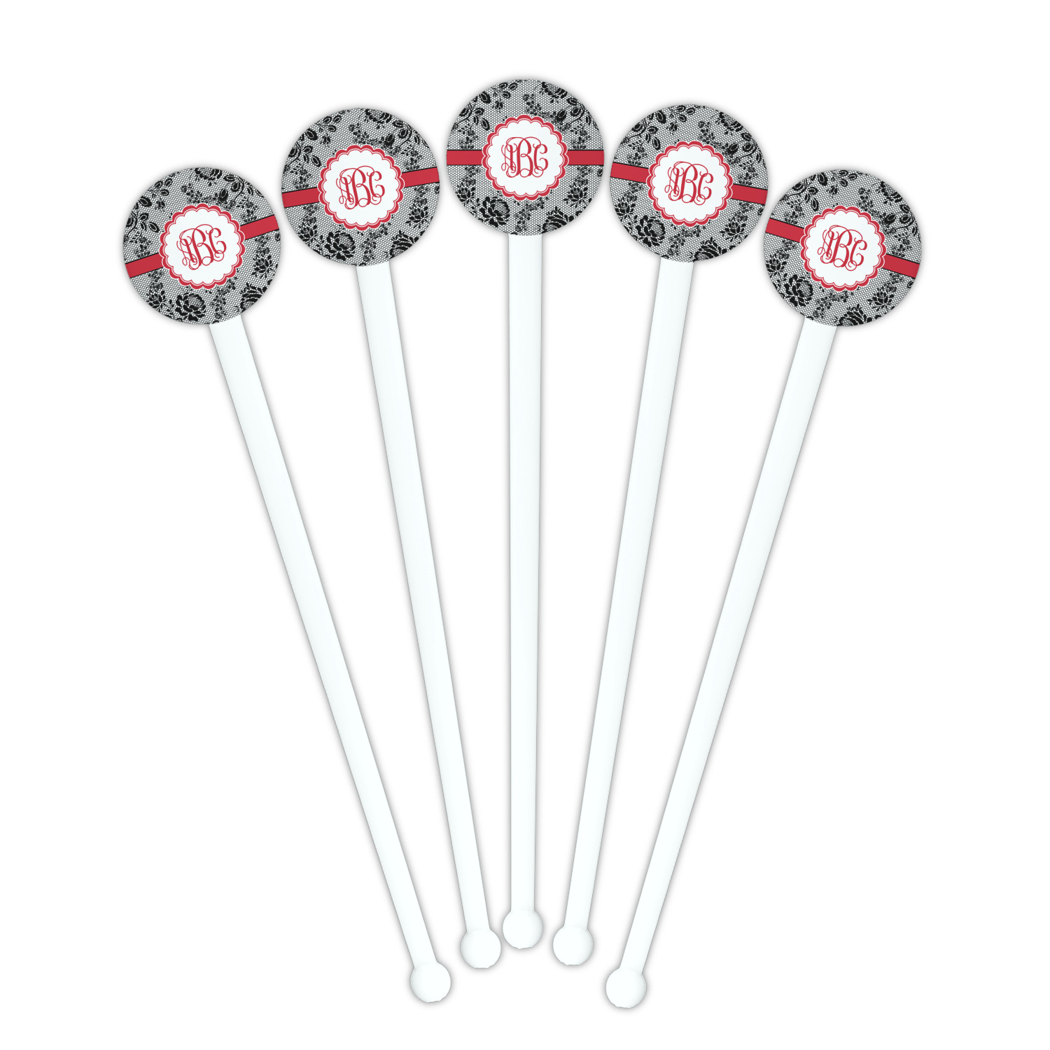 A wide red band with a thin white outline adds a punch of color. The scalloped label highlights a classic personalized monogram.