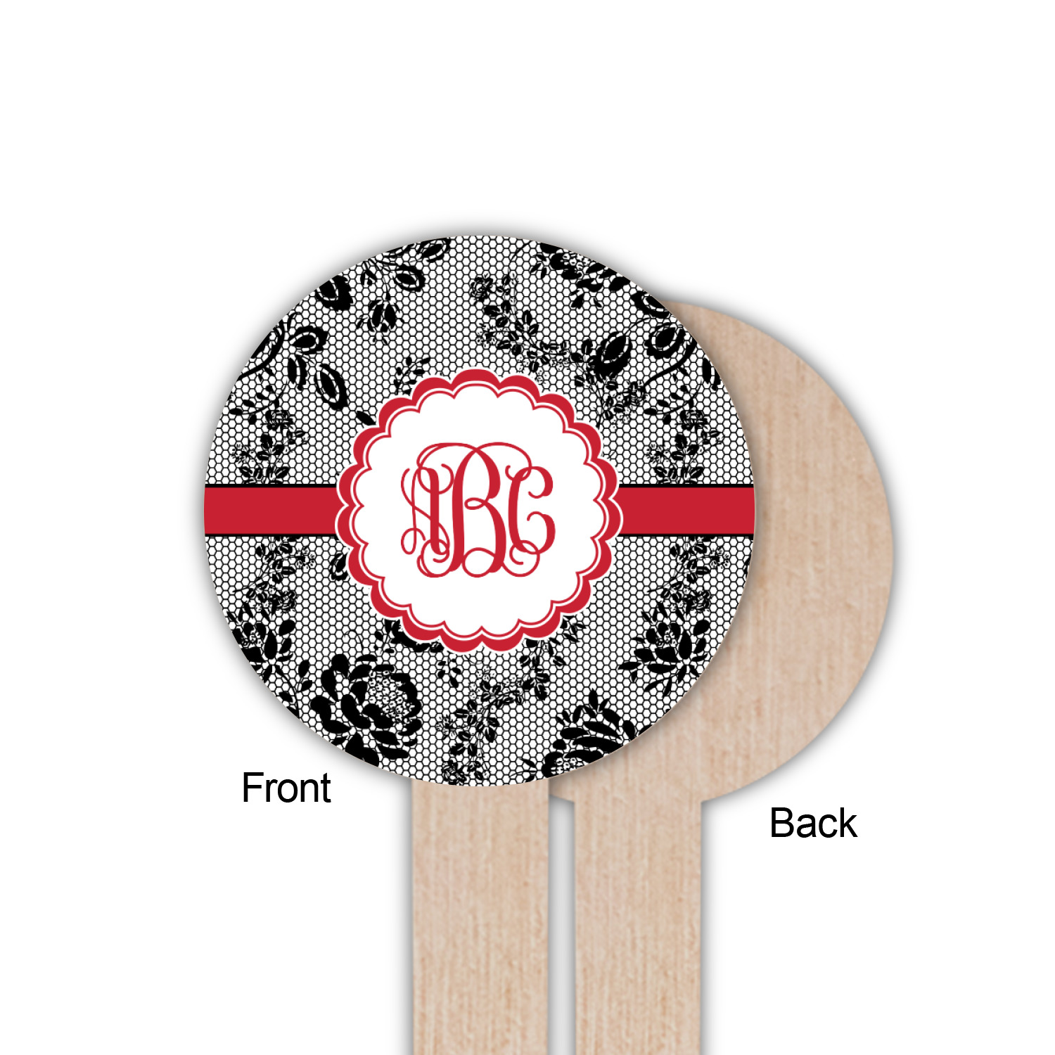 A wide red band with a thin white outline adds a punch of color. The scalloped label highlights a classic personalized monogram.