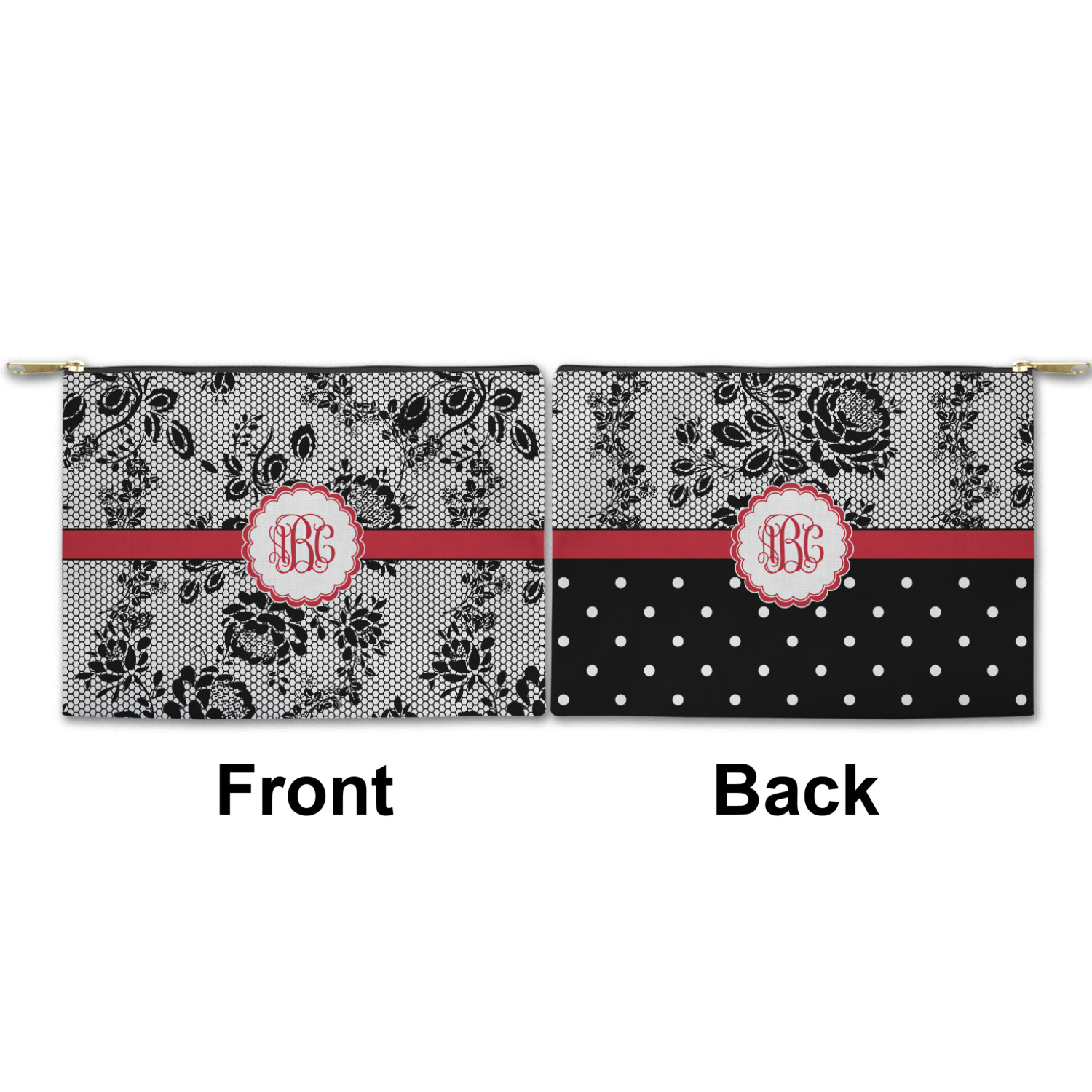 You can design both the front and the back of the pouch - same design, two complementary designs or two totally different designs - the choice is yours! We offer many different personalization styles i.e. name, name & initial, monograms - so the choice to personalize is also yours.