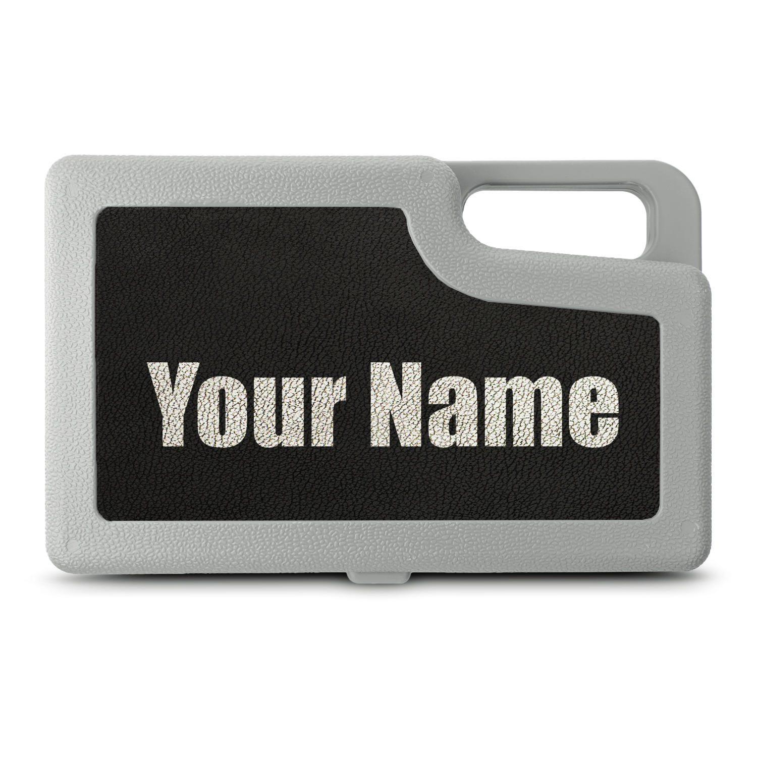 In a hard shell plastic case which measures 12in long by 7.5in wide and 3in tall, this tool kit is the perfect size to easily fit in a trunk or small compartment without taking up too much room. With the black faux leather on the outside engraved with your choice of personalization you can make this tool kit to be uniquely yours to ensure it stays with you for a lifetime!