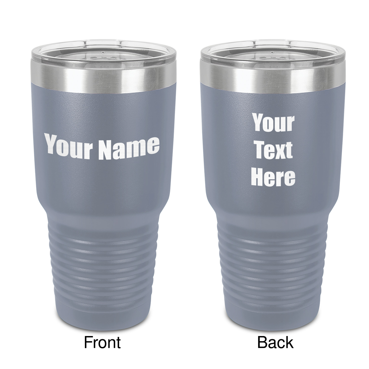 With our personalized 30 oz double wall stainless steel tumblers, you'll never have to settle for a plain, boring tumbler again! These tumblers will be a wonderful addition to your drinkware collection and will make those long commutes much brighter. Personalize one for yourself, or give these personalized tumblers as a gift to relatives, friends, or coworkers!
