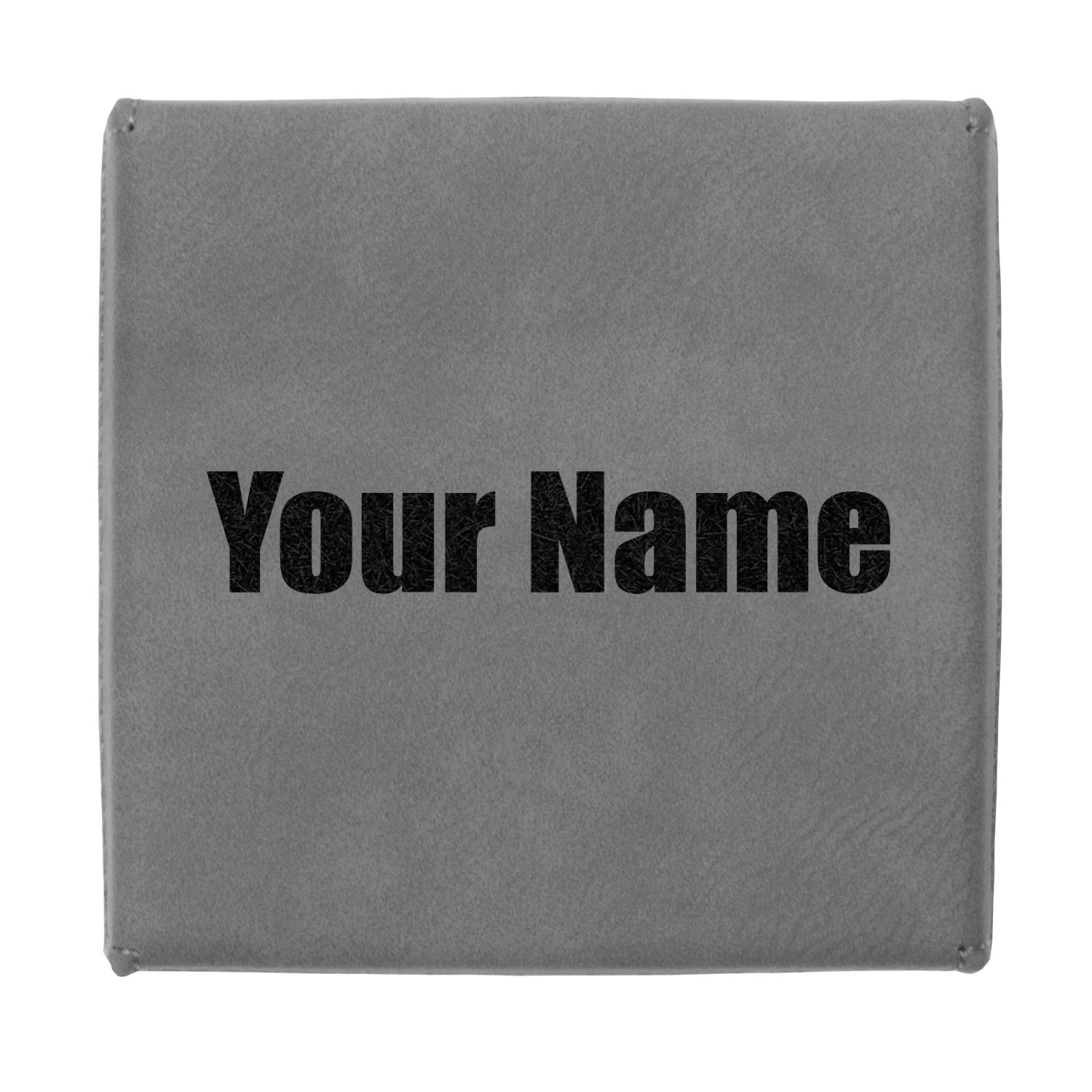 This jewelry gift box measures 3.5 inches long by 3.5 inches wide, and 1 inch deep. The box fits different sized jewelry items such as bracelets, necklaces, watches, earrings, rings and more. Engraved with a laser this high quality paper board and faux leather jewelry gift box is unique and makes any gift stand out.