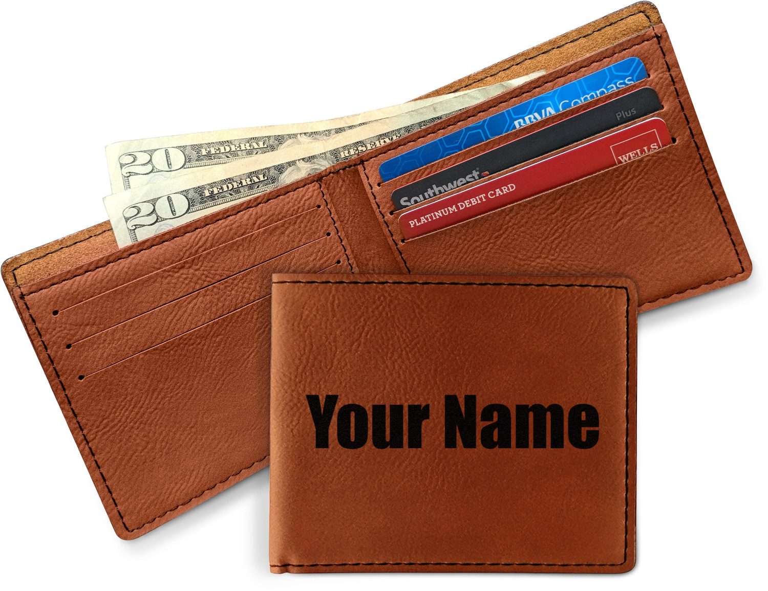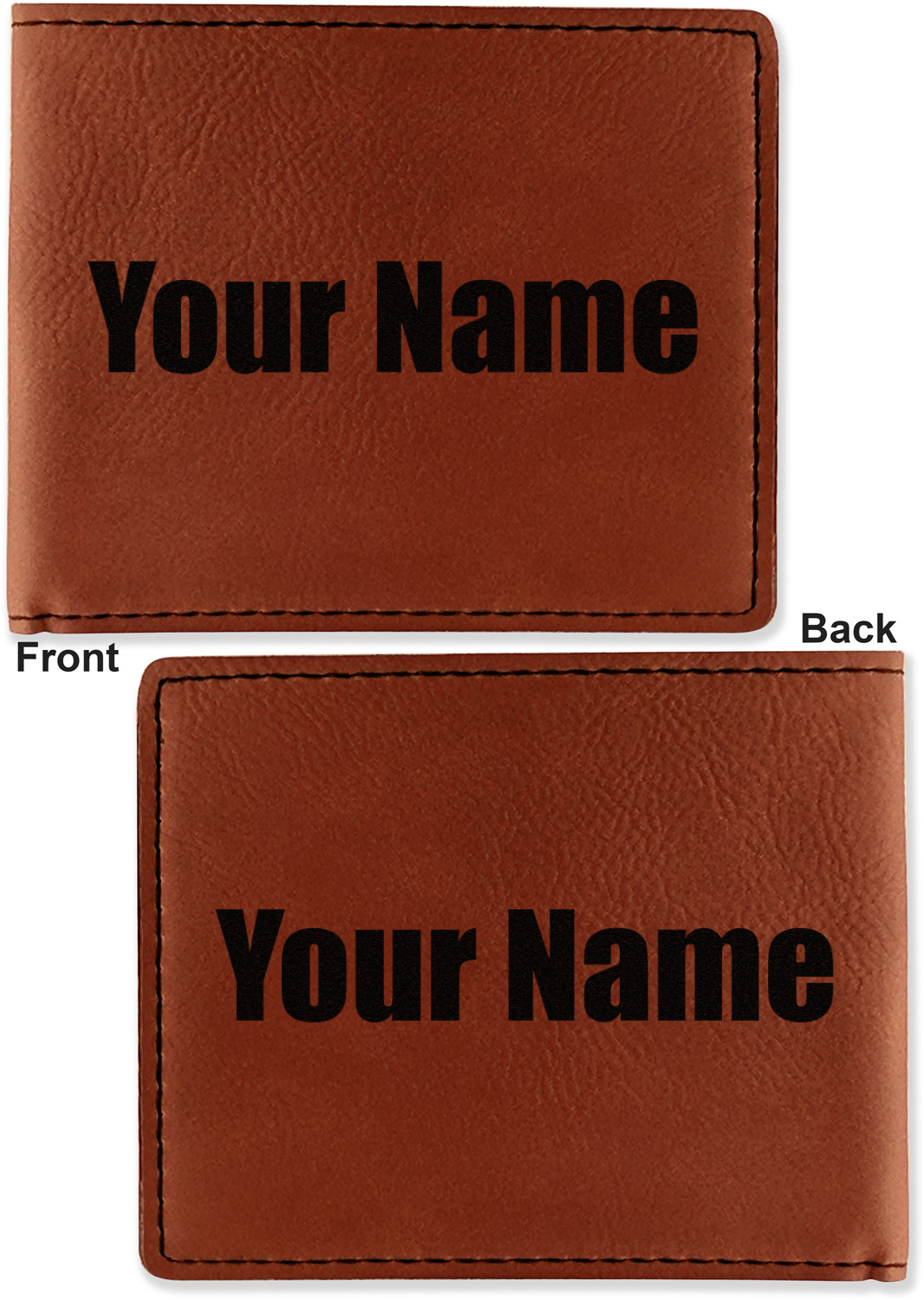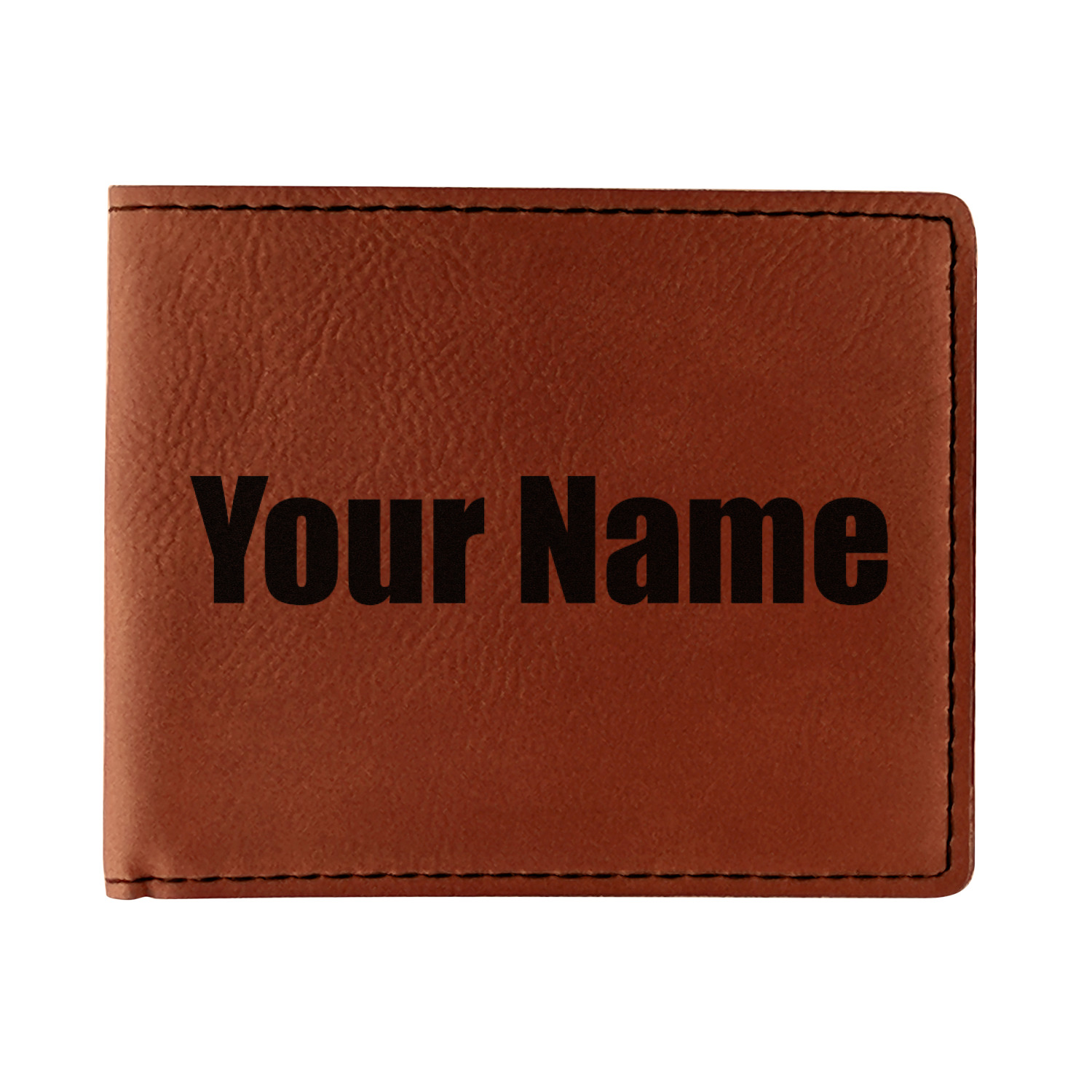 Your bifold wallet will be personalized by laser engraving, which will be a black color on the wallet. Choose a graphic, text, or monogram to personalize your wallet. There are thousands of choices in our design center.