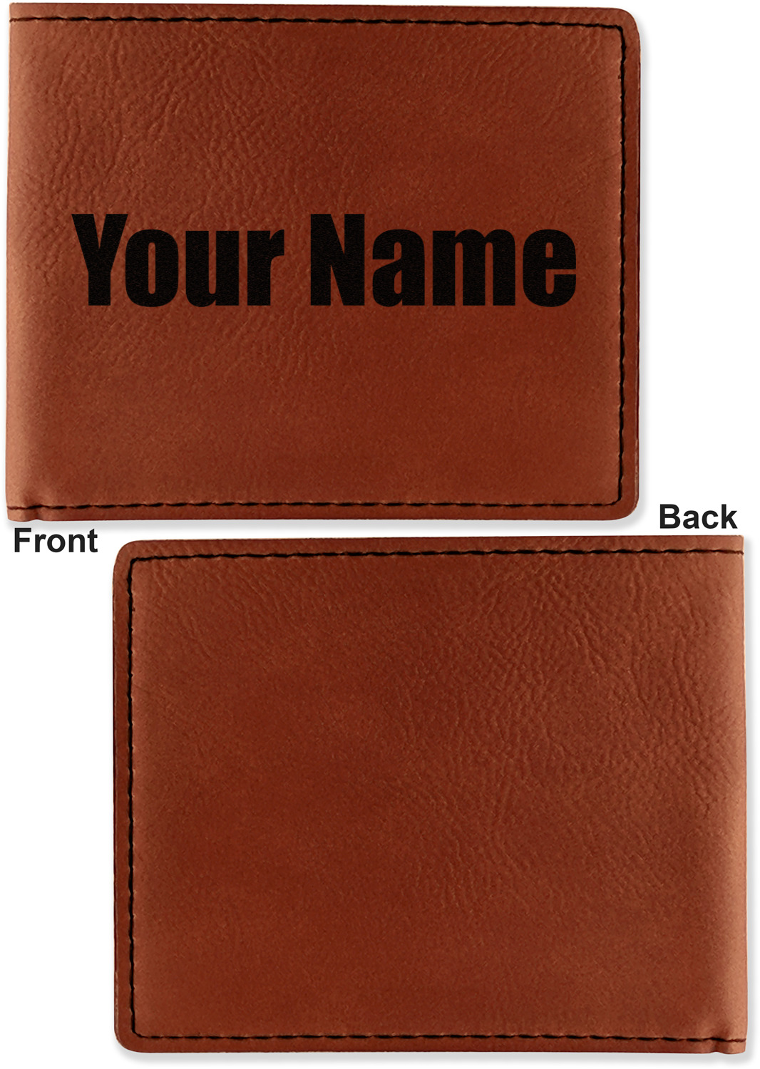 Your bifold wallet will be personalized by laser engraving, which will be a black color on the wallet. Choose a graphic, text, or monogram to personalize your wallet. There are thousands of choices in our design center.