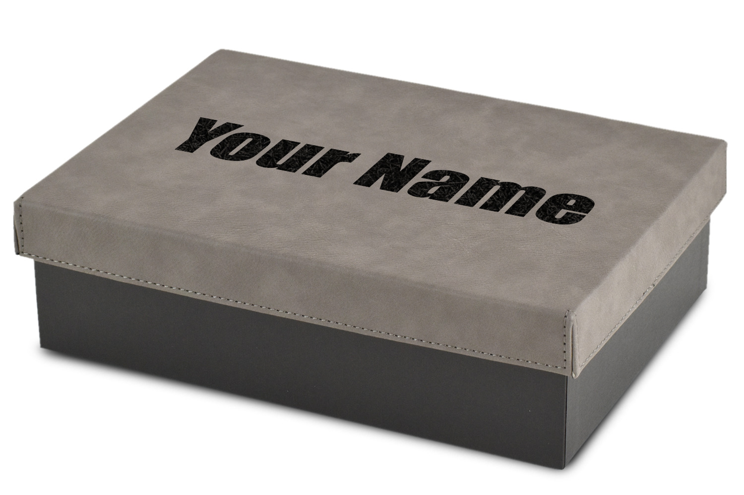 These gift boxes are available in 3 different sizes to accommodate various sized gifts. Available in gray as a neutral color for any occasion as well as to showcase your design boldly. Engraved with a laser this high quality paper board and faux leather gift box is unique and makes any gift stand out.