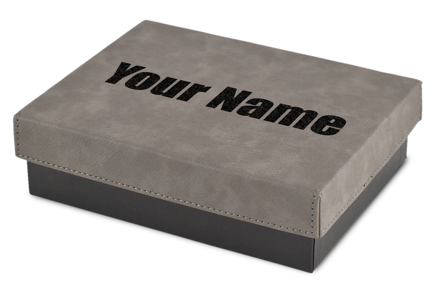 These gift boxes are available in 3 different sizes to accommodate various sized gifts. Available in gray as a neutral color for any occasion as well as to showcase your design boldly. Engraved with a laser this high quality paper board and faux leather gift box is unique and makes any gift stand out.