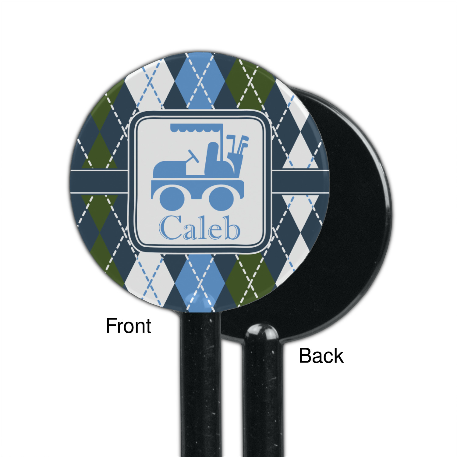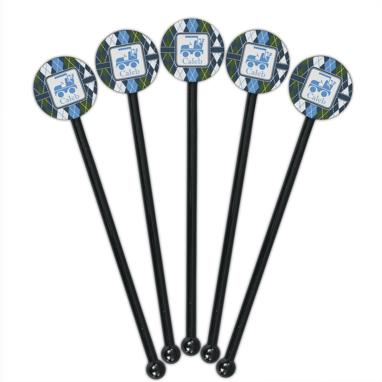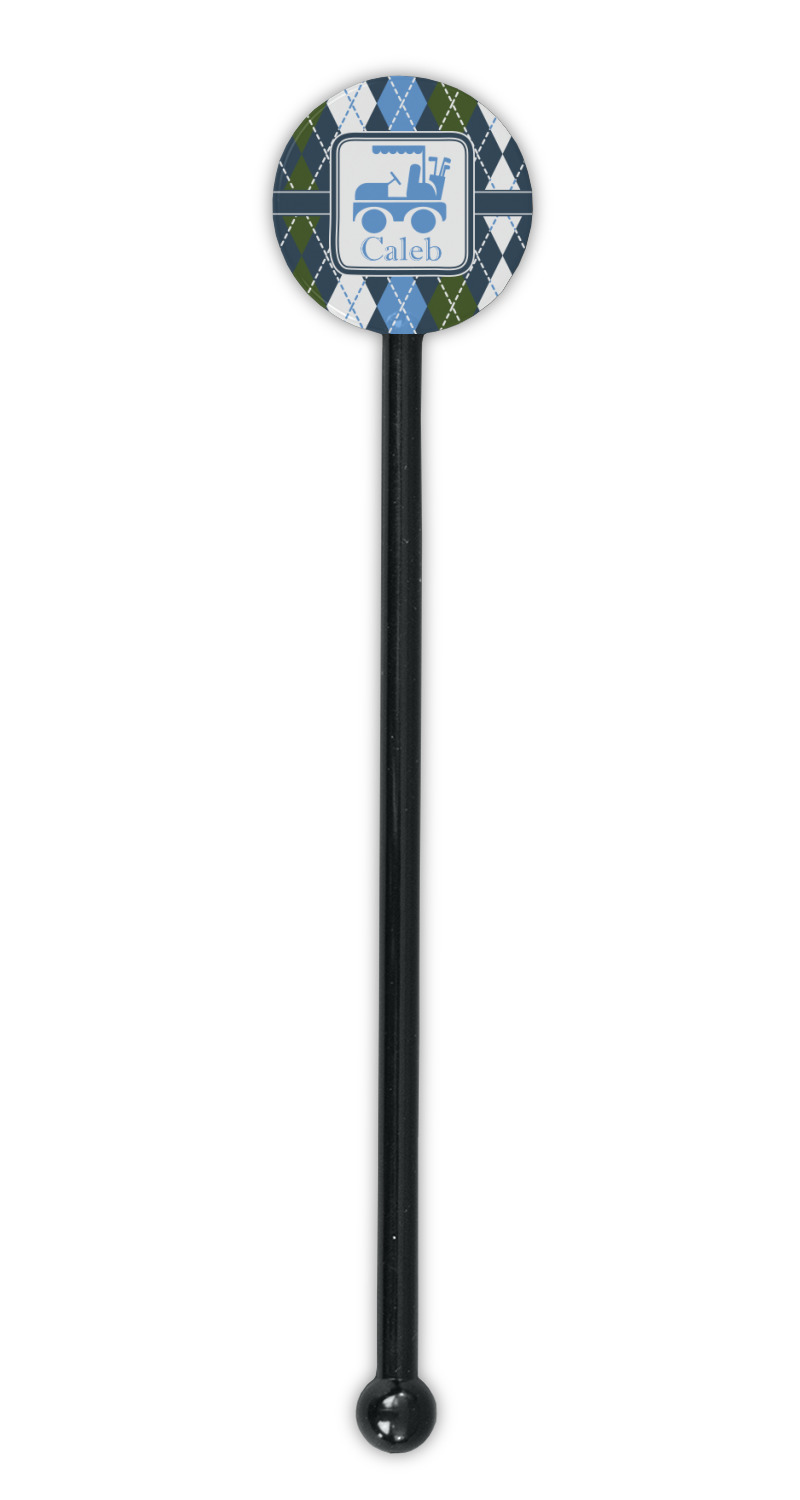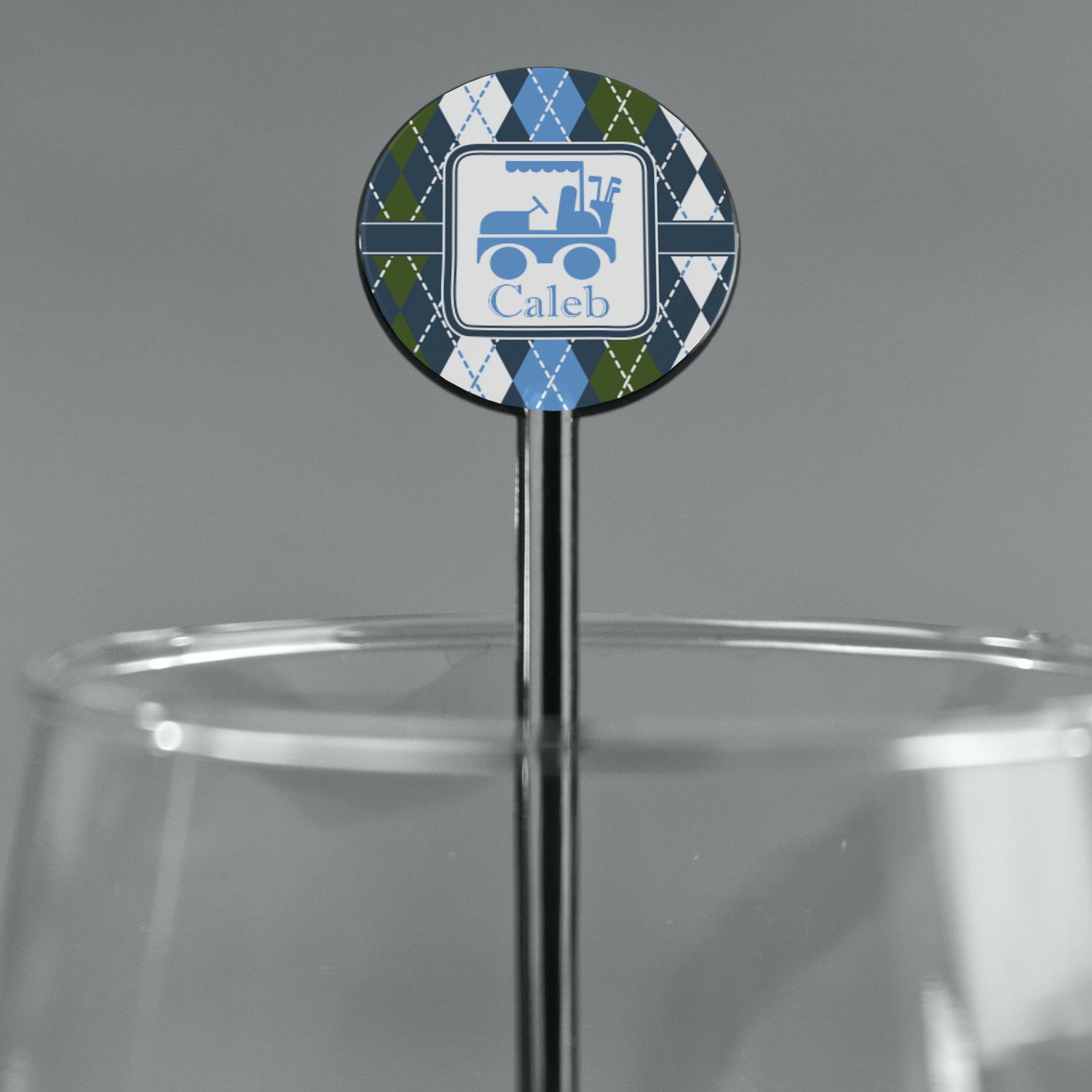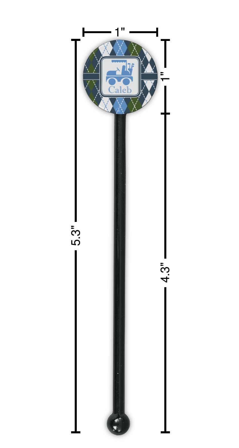 Golf Cart Designs for 5.5" Round Plastic Stir Sticks - Black - Single-Sided