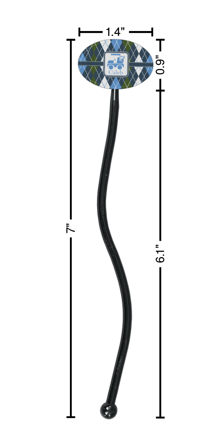 Golf Cart Designs for 7" Oval Plastic Stir Sticks - Black - Single-Sided