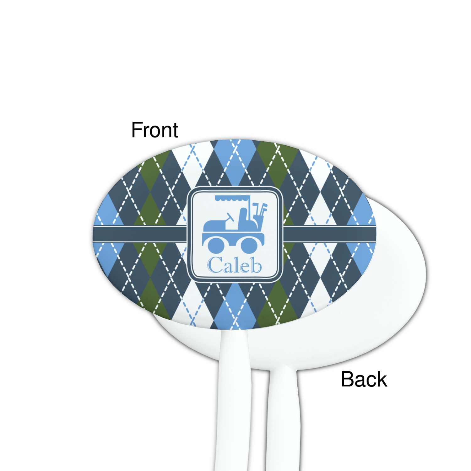 Golf Cart Designs for 7" Oval Plastic Stir Sticks - White - Single-Sided