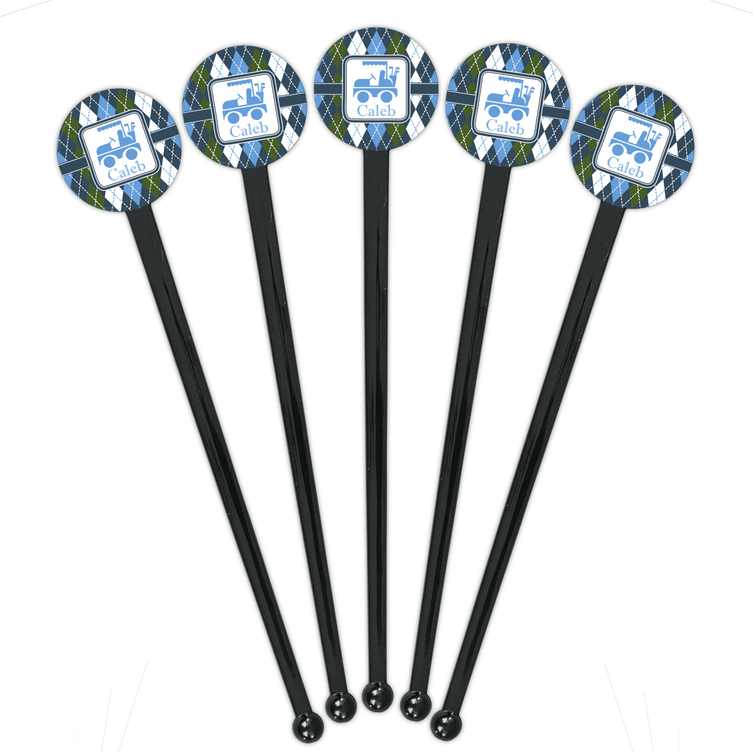 Golf Cart Designs for 7" Round Plastic Stir Sticks - Black - Single-Sided