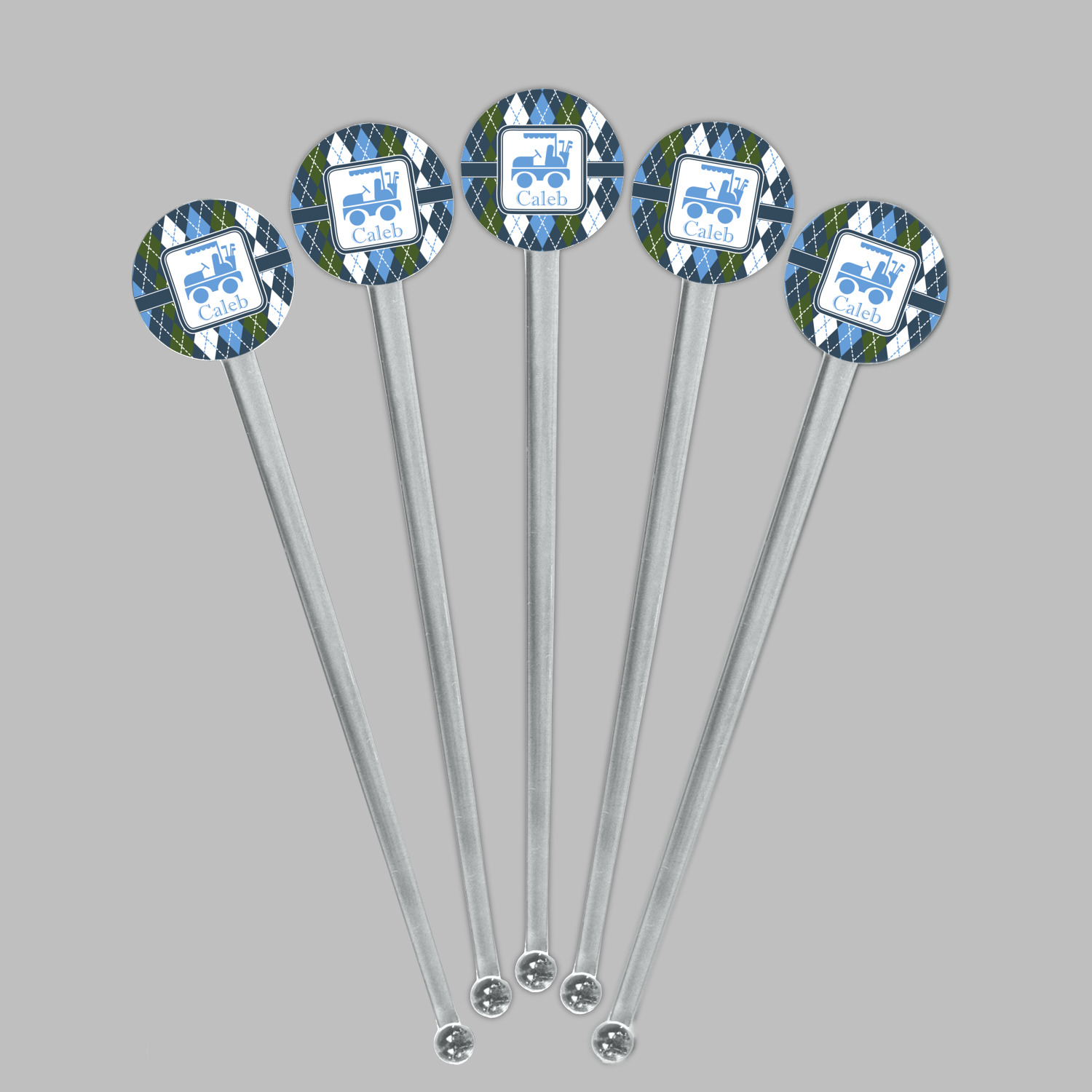 Golf Cart Designs for 7" Round Plastic Stir Sticks - Clear