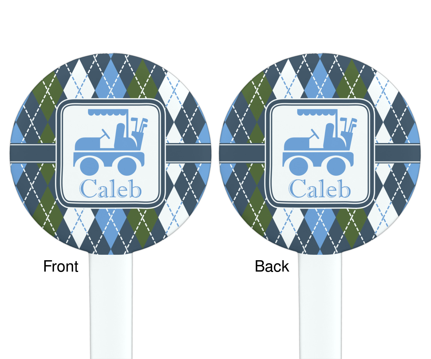 Golf Cart Designs for 7" Round Plastic Stir Sticks - White - Double-Sided