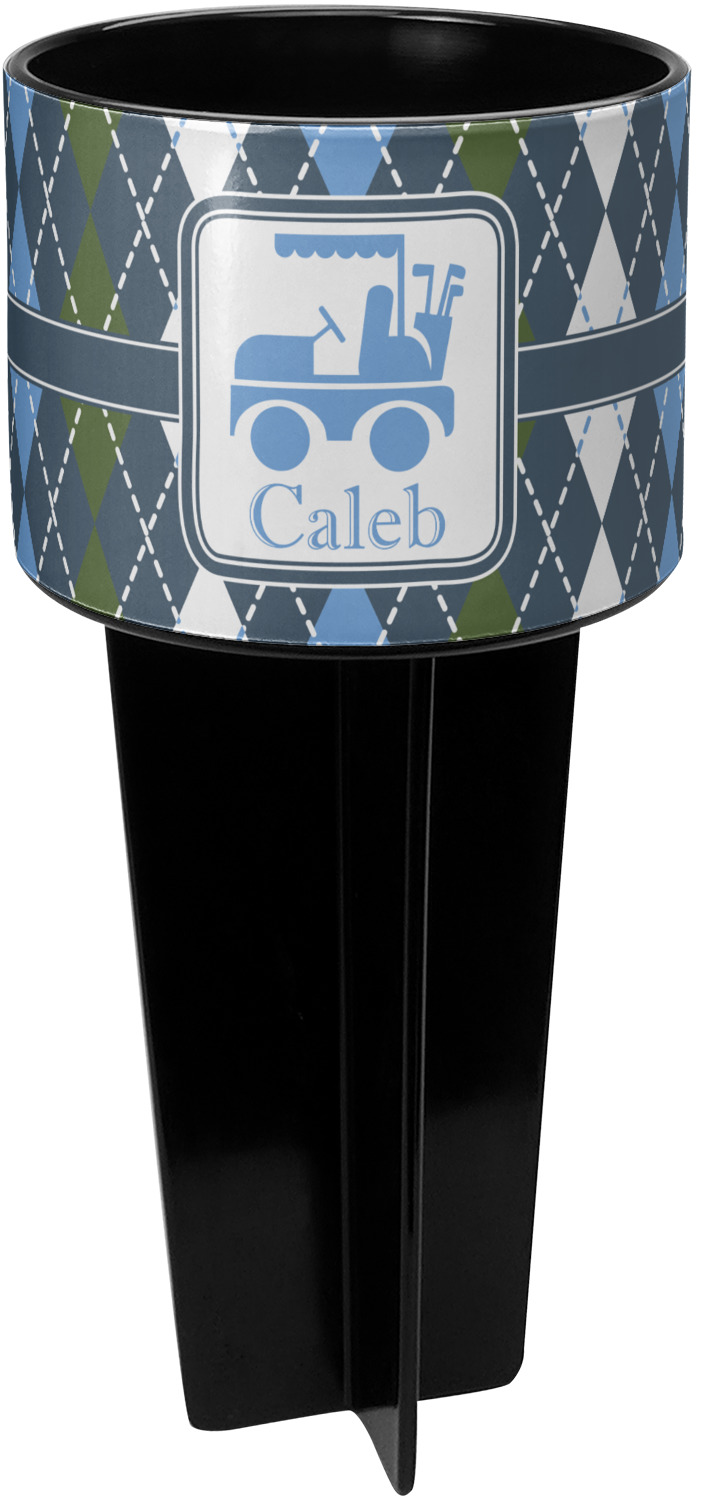 This cup holder has a large stake at its bottom that anchors it to the sand or ground below, while the cup holder rests above the stake. The entire drink holder is made of durable plastic and displays your customization around the cup holder portion. We sell these personalized beach spikers in two different colors: black and white.