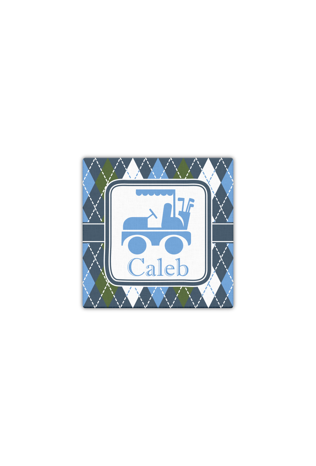 A wide band of dark blue trimmed in white pulls the design together. A square white label that is trimmed in double rows of dark blue will provide the focal point for your little one's very own golf cart and personalization of your choice.