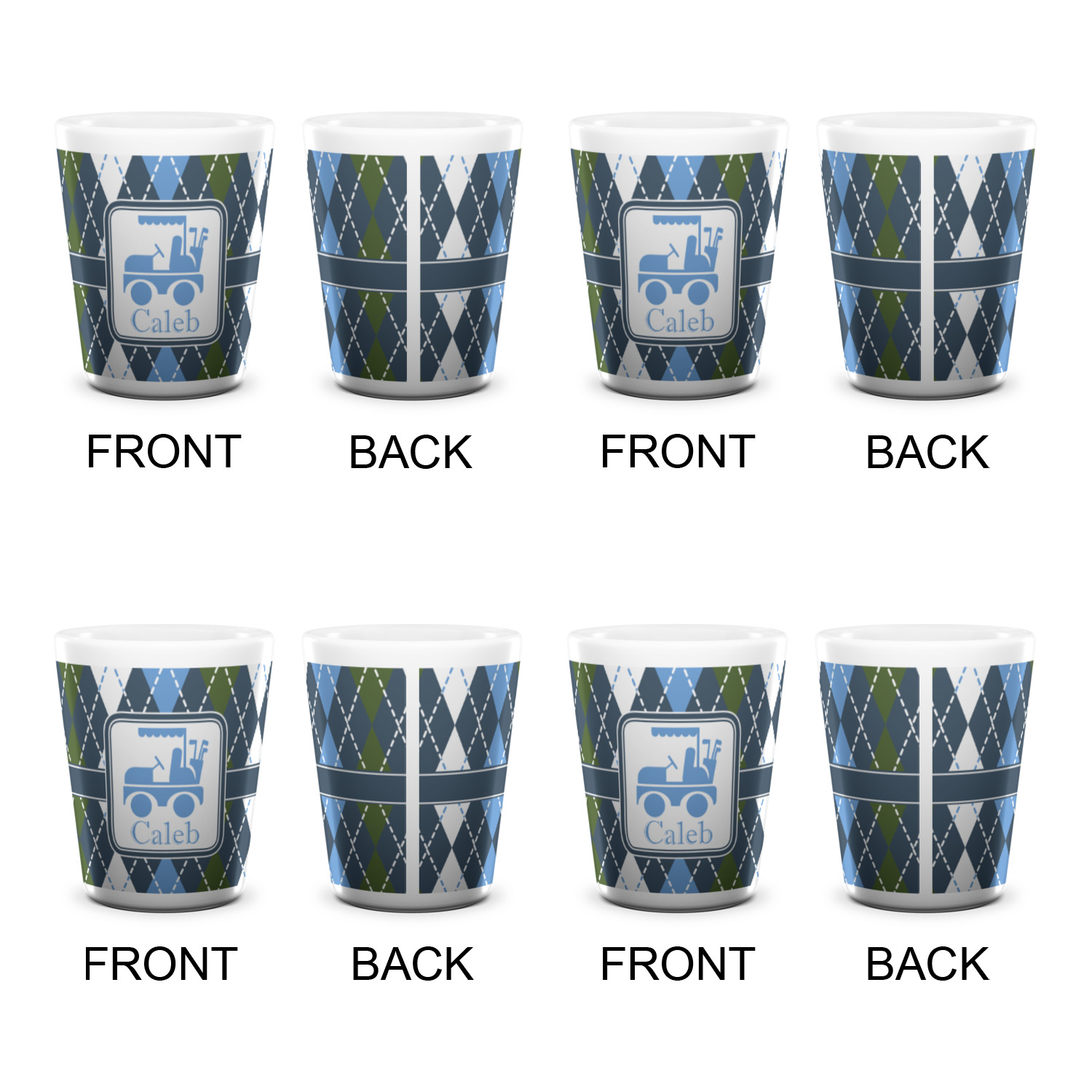 Golf Cart Designs for Ceramic Shot Glasses - 1.5 oz - White - Set of 4