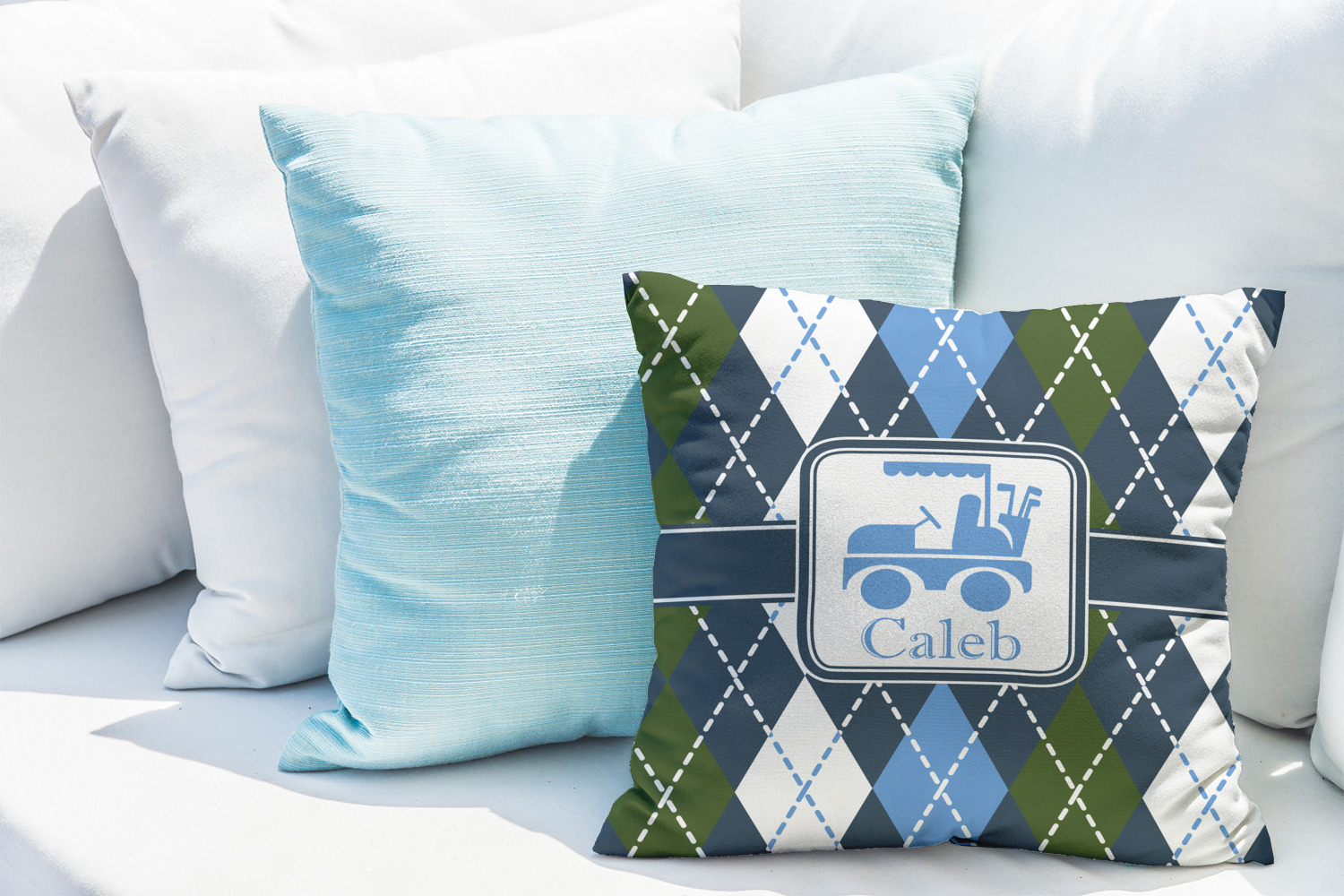 What golfer wouldn't want to be surrounded with a bit of argyle? We have taken the traditional argyle pattern and dressed it up by using dark and light blues, dark green and white.