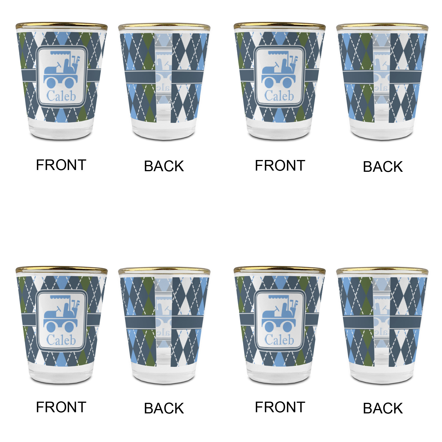 Golf Cart Designs for Glass Shot Glasses - 1.5 oz - with Gold Rim - Set of 4