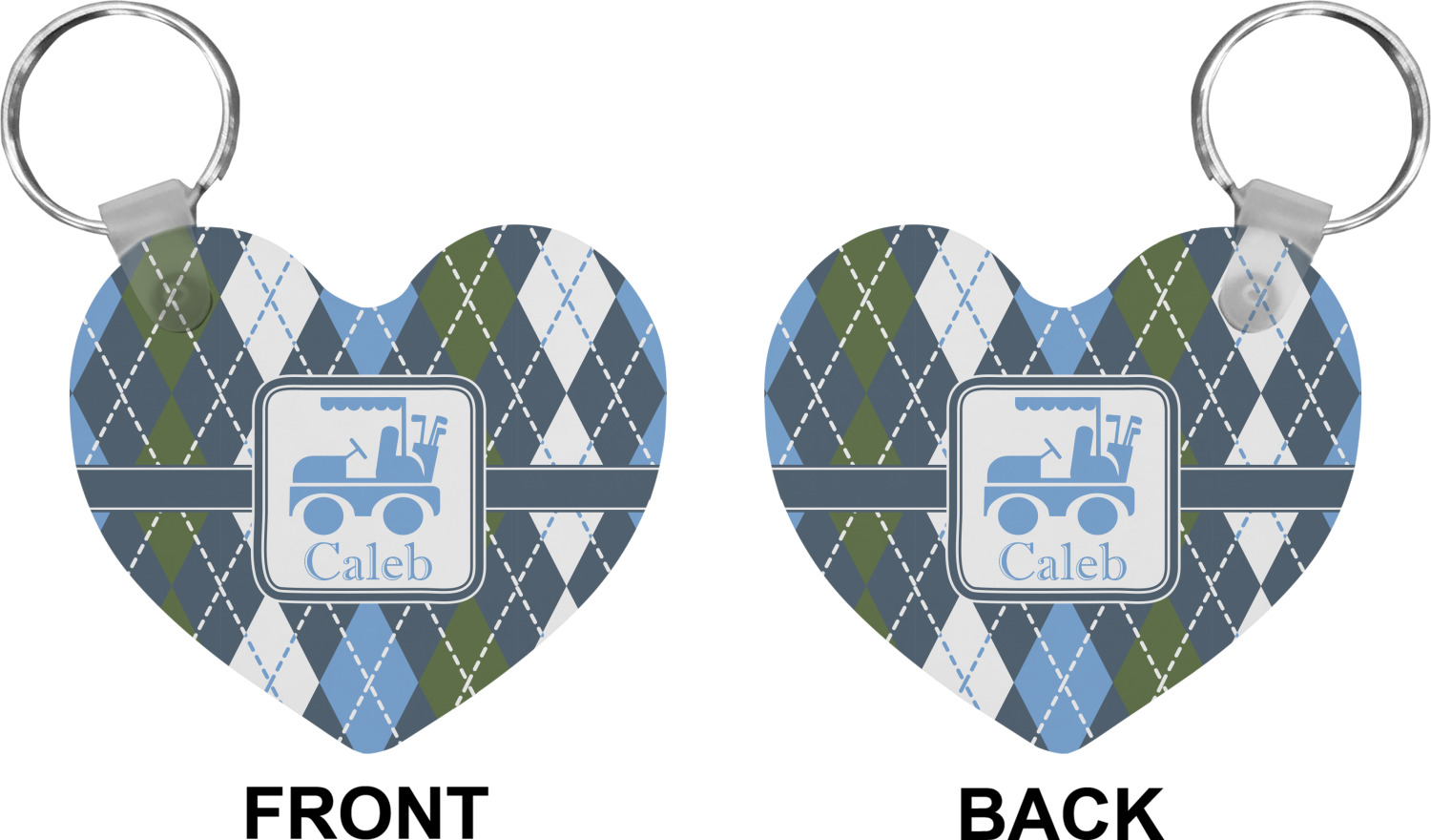 Our personalized keychains attach to the included metal, split key ring with a plastic, removable snap. Since a metal ring is included with your purchase, you have the liberty to keep your keys together on the ring, with or without your unique keychain. We offer this keychain in three different shapes: circle, heart, or diamond. We print your personalized design(s) on both sides of the key chain, and the surface has a glossy, reflective finish that only emphasizes your design. Each keychain is approximately 2.25 by 2.25 inches.