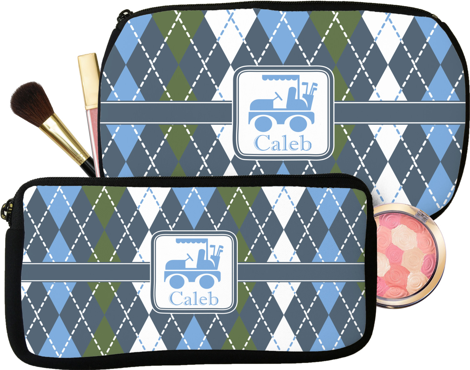 Our personalized makeup bags are available in many different designs, patterns and colors - so you are sure to find one that will love. They are made of neoprene (same material as wet-suits) and thus are water resistant, so spillages in your makeup bag will not end up all over you purse. They are customized on one side and are black on the other side and the zipper is black as well.