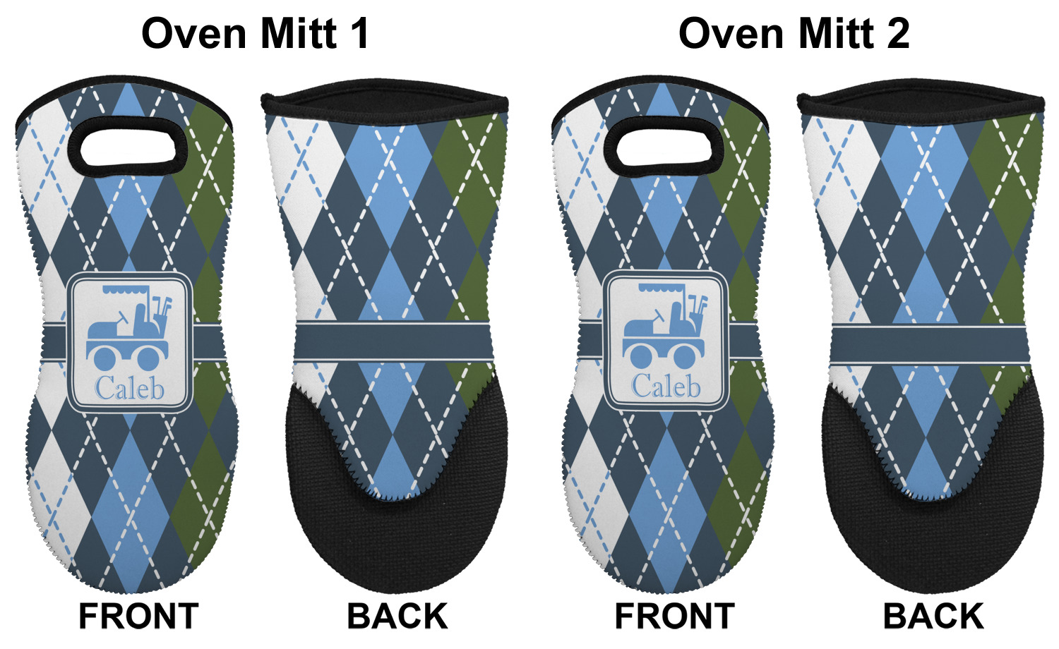 Golf Cart Designs for Neoprene Oven Mitts - Set of 2