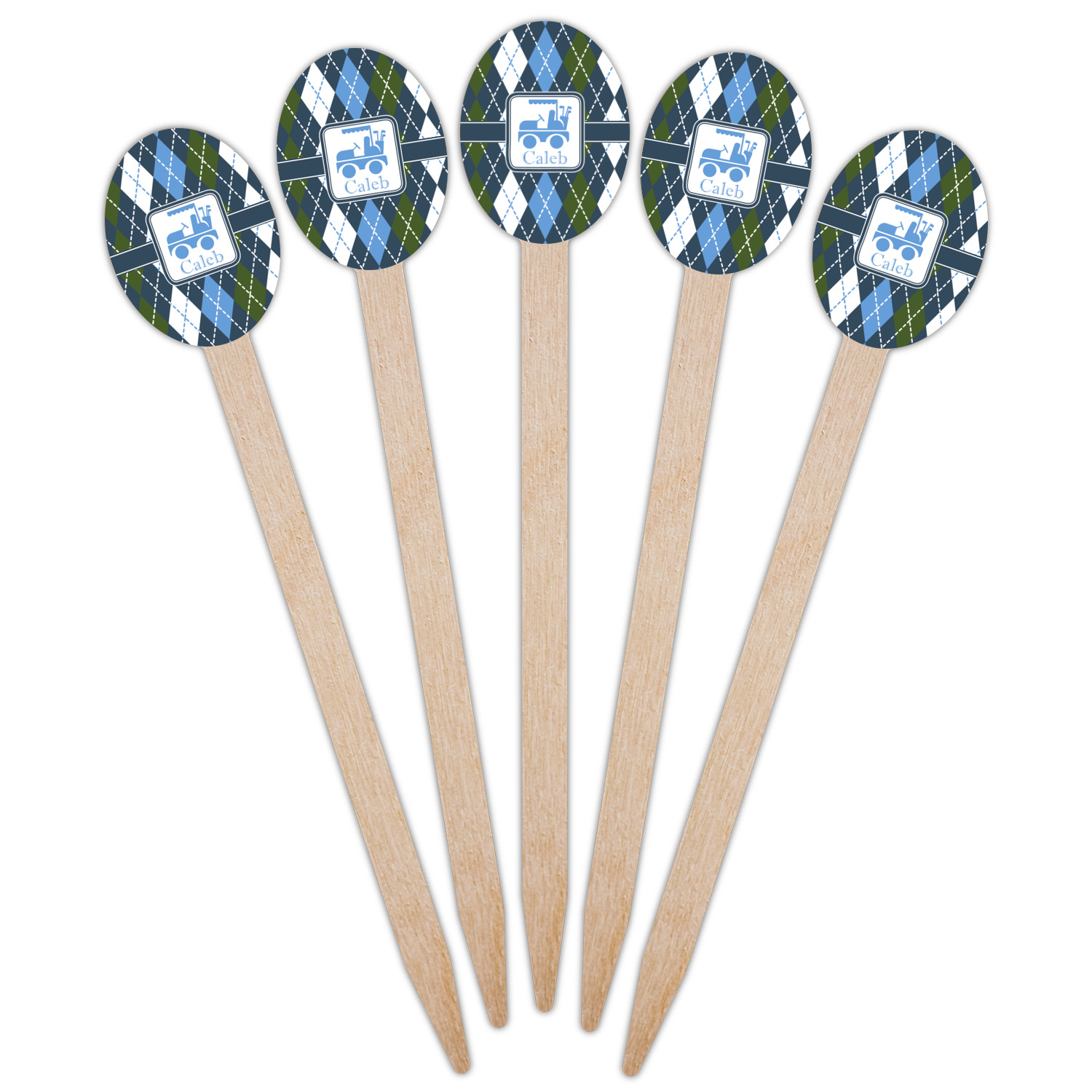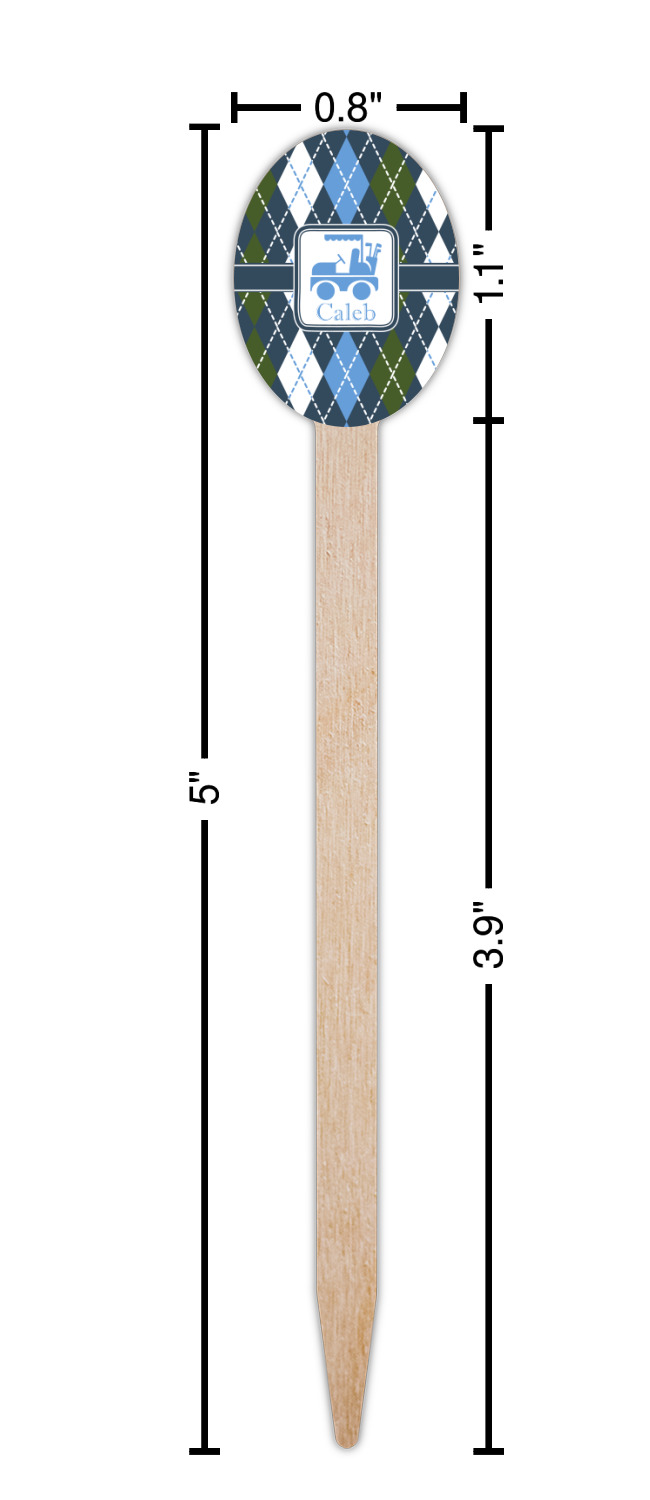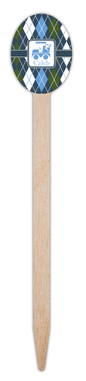 Golf Cart Designs for Oval Wooden Food Picks - Single-Sided