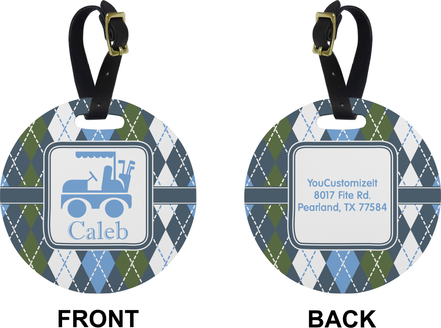 Golf Cart Designs for Plastic Luggage Tags - Round