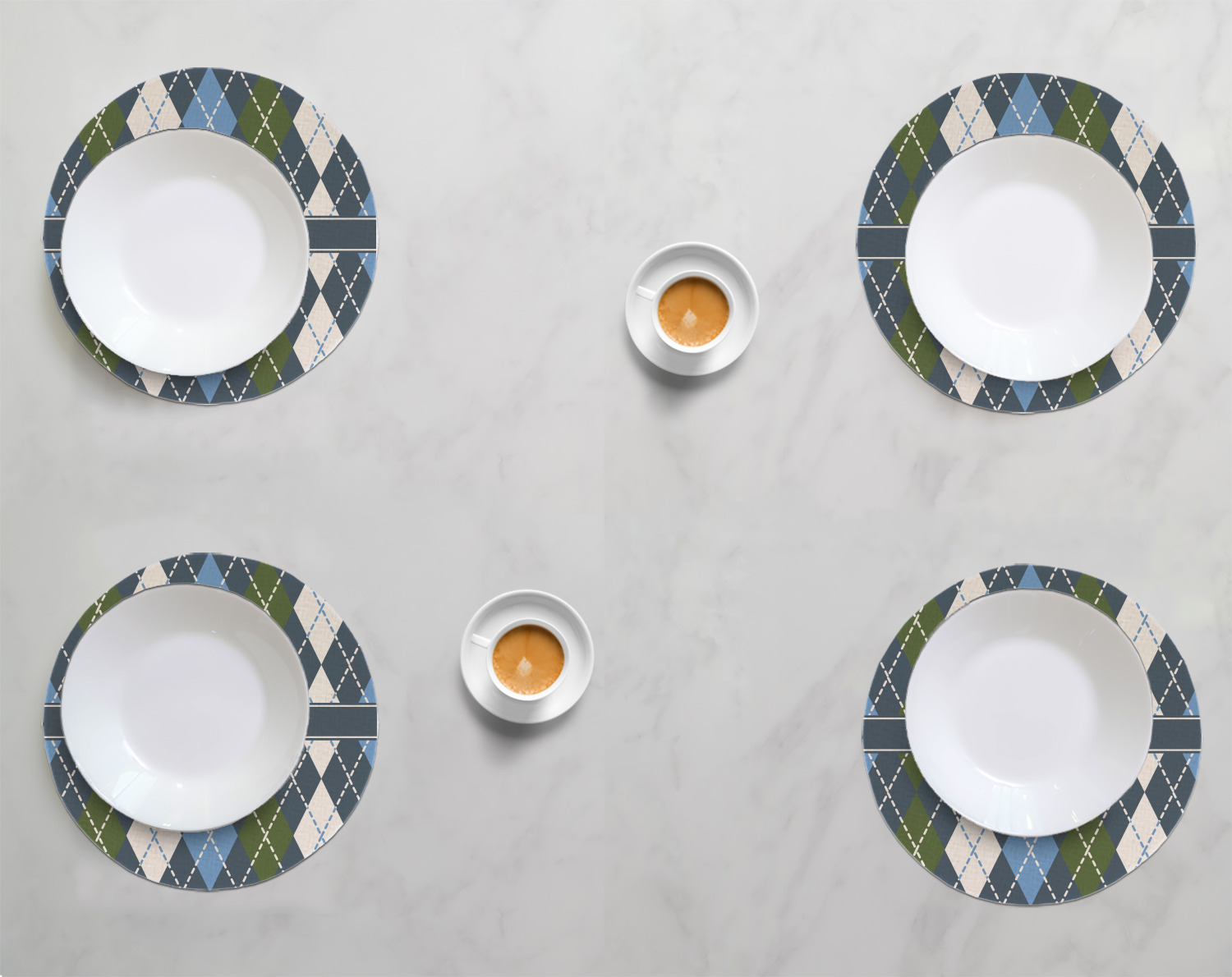 What golfer wouldn't want to be surrounded with a bit of argyle? We have taken the traditional argyle pattern and dressed it up by using dark and light blues, dark green and white.