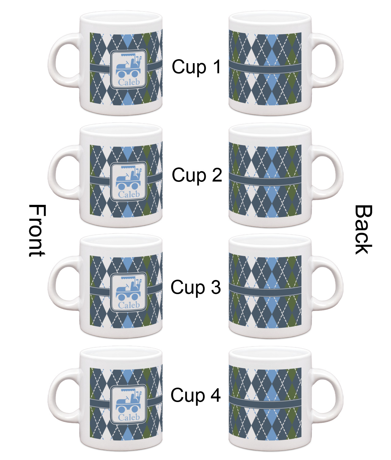 Golf Cart Designs for Single Shot Espresso Cups - Set of 4