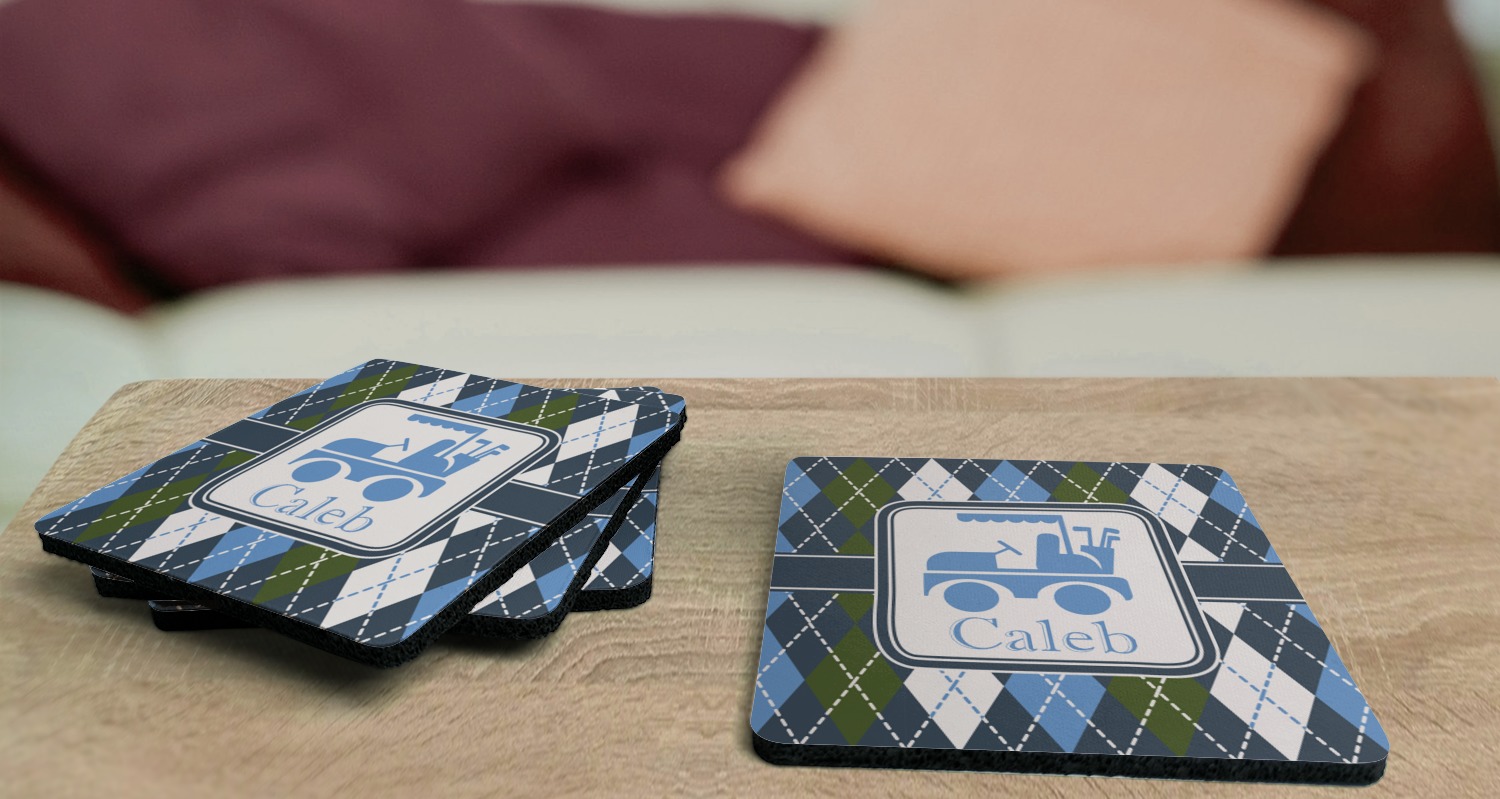 Golf Cart Designs for Square Rubber Backed Coasters - Set of 4